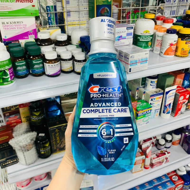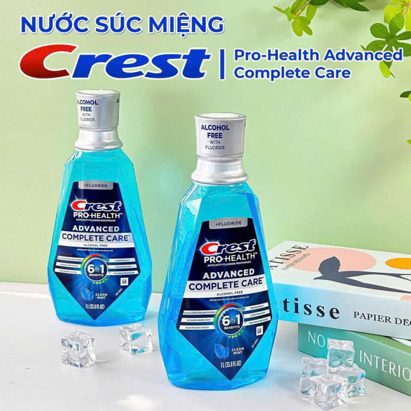 ✔ Nước súc miệng Crest Pro Health Advanced Complete Care 6 in 1 - 1 Lít là giải pháp toàn diện giúp bảo vệ răng miệng, diệt khuẩn, ngăn ngừa mảng bám, hơi thở thơm mát dài lâu.