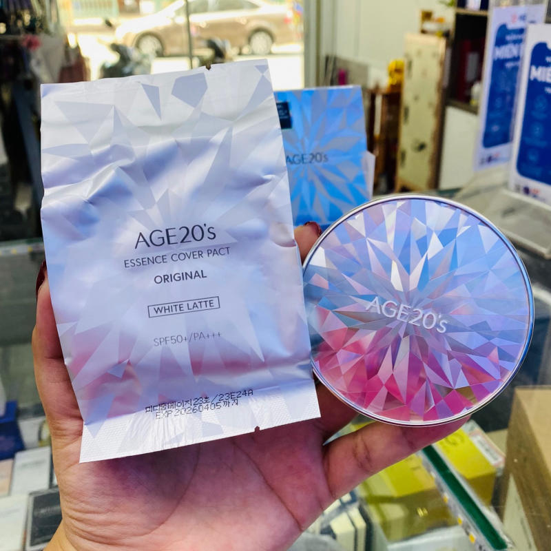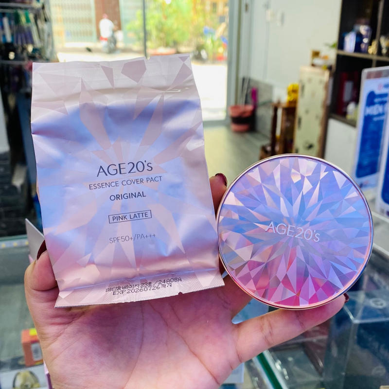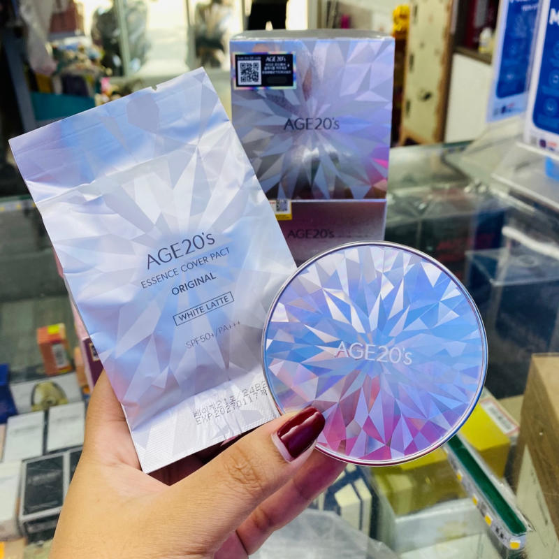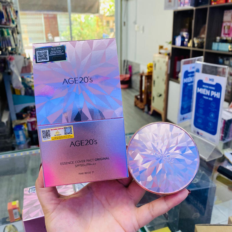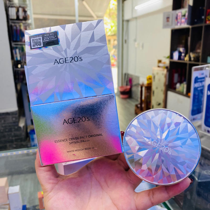 Phấn Nền Lạnh Age20’s Essence Cover Pact Original Spf50+/pa+++ có thể nói là sản phẩm trang điểm chiến lược và chủ đạo hiện tại của Age 20's là các dòng phấn lạnh hay còn gọi là phấn tươi. Mãi mãi làn da tuổi 20 là Tôn chỉ mà hãng luôn hướng tới. Nhằm mang lại vẻ đẹp tràn đầy sức sống như vậy, Age 20's mang lại những ưu điểm nổi trội không thể "chối từ" như: Cảm giác mát lạnh khi thoa lên da. Chỉ số chống nắng cao SPF 50+/PA+++ bảo vệ da. Độ che phủ tốt. Thành phần an toàn, lành tính và mang lại lợi ích cho làn da như: bột kim cương, tảo nâu, rau má, ngọc trai,...