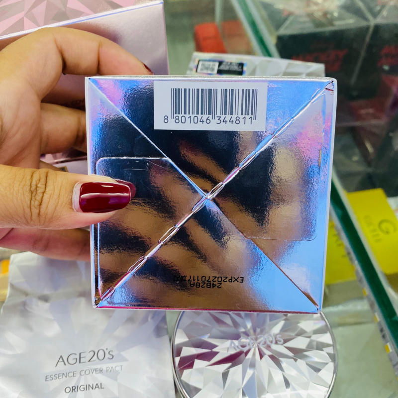 Phấn Nền Lạnh Age20’s Essence Cover Pact Original Spf50+/pa+++ từ thương hiệu AGE 20’s của Hàn Quốc với thiết kế lôi cuốn và thật sự lung linh thu hút các nàng ngay từ cái nhìn đầu tiên. Hộp phấn cầm chắc tay, bông mút chất lượng tốt. Phấn nền giúp giữ tone trong thời gian dài, lâu trôi, độ ẩm mức độ trung bình, độ che phủ tốt, độ lâu trôi tốt. Thiết kế sản phẩm ấn tượng xinh đẹp lung linh như viên kim cương lấp lánh cực kì sang trọng và đẹp mắt