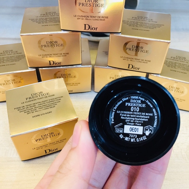 Phấn nước Dior Prestige Cushion 4g mini. Vỏ hộp sang trọng, xa xỉ là sự kết hợp giữa sức mạnh giúp hồi sinh làn da rạng rỡ từ 500 cánh hoa hồng với sự hoàn hảo trong công nghệ makeup tân tiến nhất của một lớp nền thế hệ mới, vừa là một sản phẩm trang điểm hoàn hảo, vừa là một sản phẩm dưỡng da hằng ngày giúp chống lão hóa, dưỡng da căng bóng và đều màu hơn sau mỗi lần sử dụng.