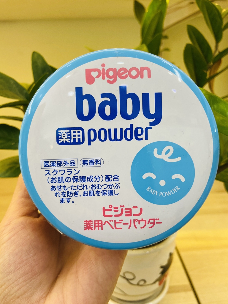 Phấn rôm Pigeon Baby Powder Nhật hộp thiết màu xanh là loại phấn rôm không mùi, có chứa kẽm oxide, canxi và squalen; là sản phẩm trị rôm sảy cho bé có tác dụng hút hết mồ hôi ẩm trên người bé, và dưỡng da giúp da bé luôn khô thoáng và không còn bị rôm sảy nữa.