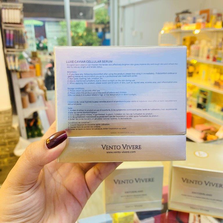 Vento Vivere Luxe Caviar Cellular Serum đã tạo nên 1 làn sóng mới cho giới làm đẹp. Serum dưỡng da cao cấp của Thuỵ sỹ Ageless Legend Luxe Caviar có tác dụng xóa nhăn, giúp da đàn hồi, săn chắc rõ rệt. Đặc biệt Vento Vivere Luxe Caviar Cellular Serum khống chế quá trình lão hóa da. Đây được xem là công nghệ thay da từ tế bào noãn thực vật Thụy sĩ.