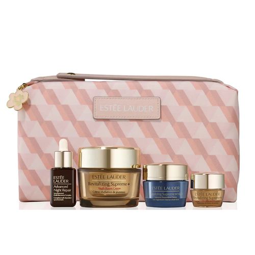 Ngoài ra set sản phẩm Estée Lauder Revitalising Supreme+ còn đi kèm túi đựng mỹ phẩm có màu hồng nhẹ nhàng, bắt mắt được làm với kích cỡ du lịch phù hợp để chứa những đồ trang điểm skincare hàng ngày rất tiện lợi và gọn nhẹ.