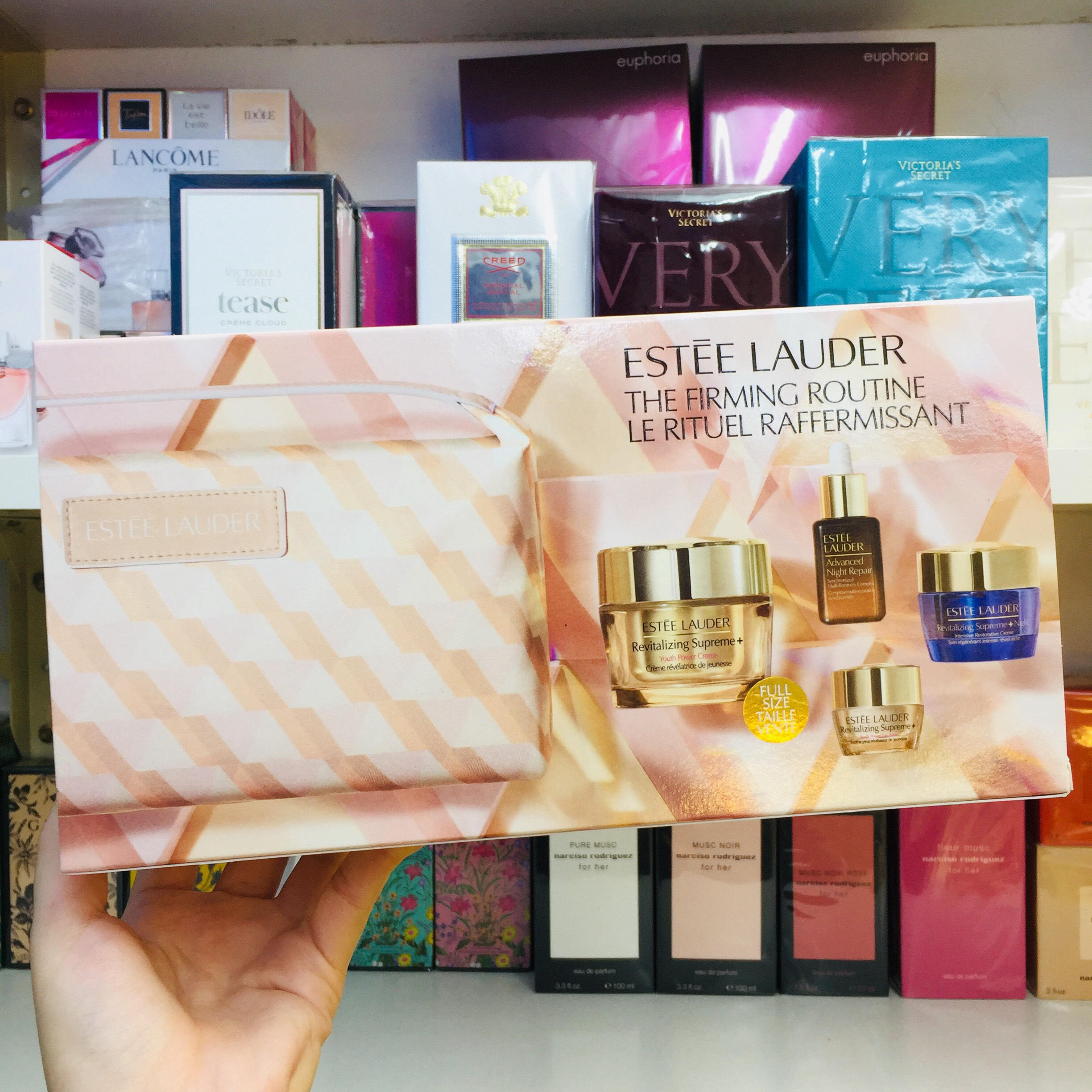 Set 4 Món Kèm Túi Estee Lauder The Firming Routine Le Rituel Raffermissant là sản phẩm đến từ thương hiệu Estée Lauder của Mỹ. Với set sản phẩm này giúp thúc đẩy vẻ ngoài mịn màng, săn chắc và tươi sáng hơn cho làn da.