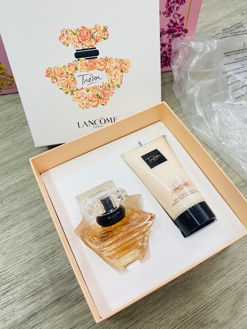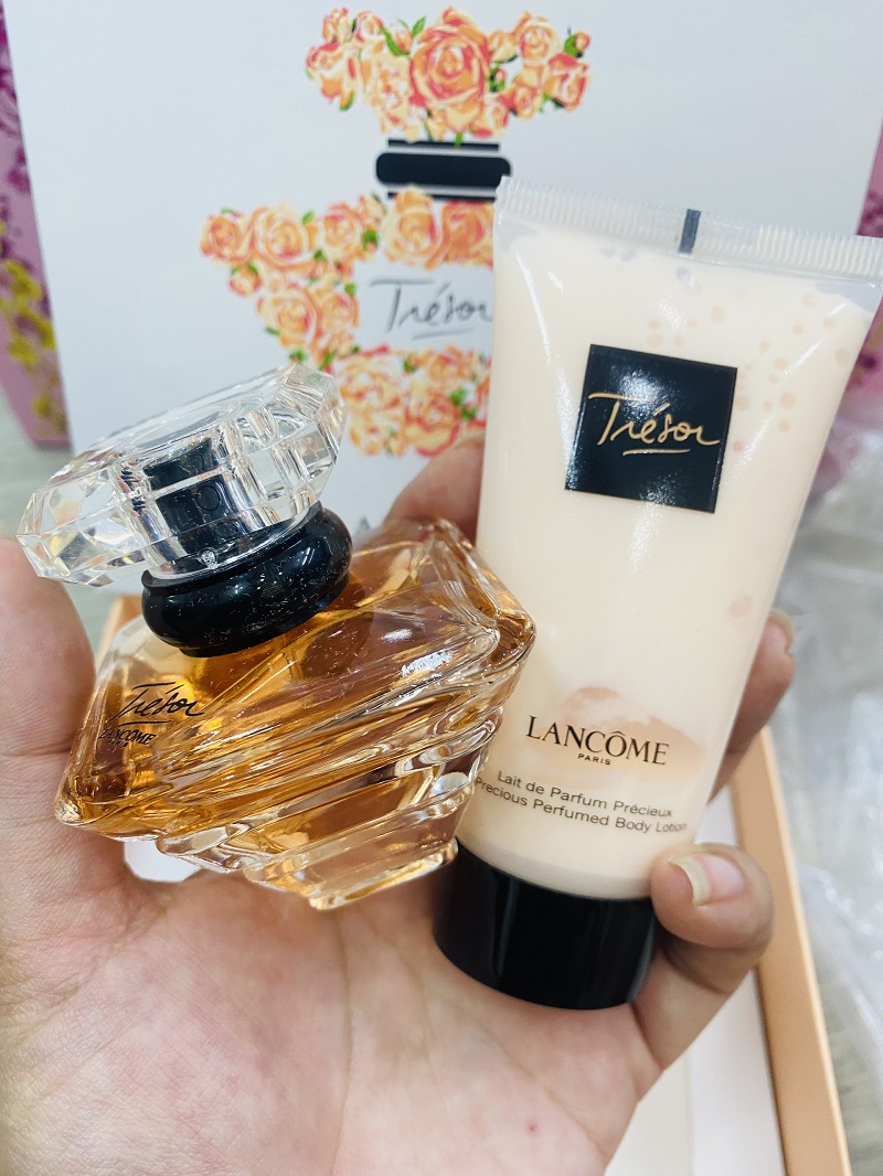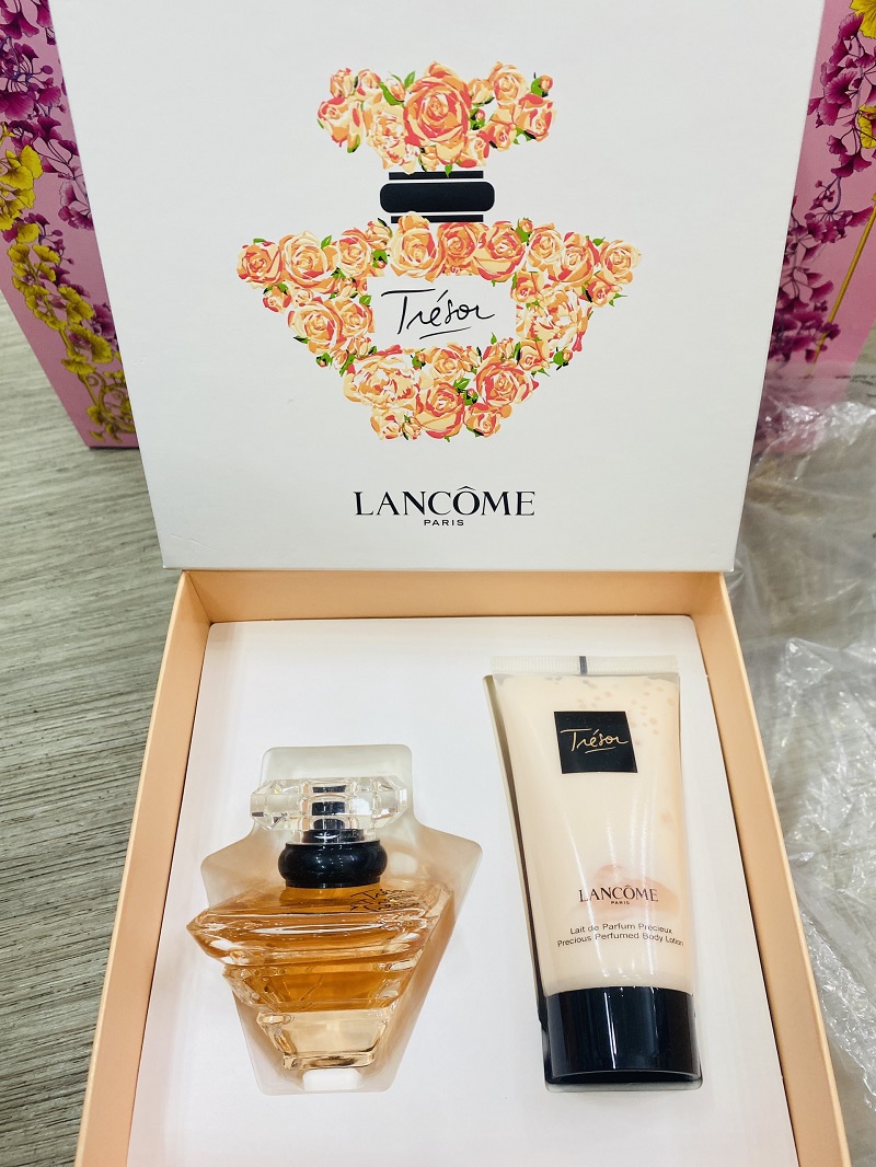 - Set nước hoa Lancôme Tresor là món quà tinh tế và đầy ấp áp bởi mùi hương sang trọng và quyễn rũ mê hoặc. Lancôme Tresor là dòng nước hoa thành công nhất của Lancôme vì nó đã mang lại sự tự tin và niềm vui cho người sử dụng bởi nó giúp ngưới ta cảm nhận được những nét riêng biệt độc đáo của mình mà không thể lầm lẫn với bất kỳ ai khác.