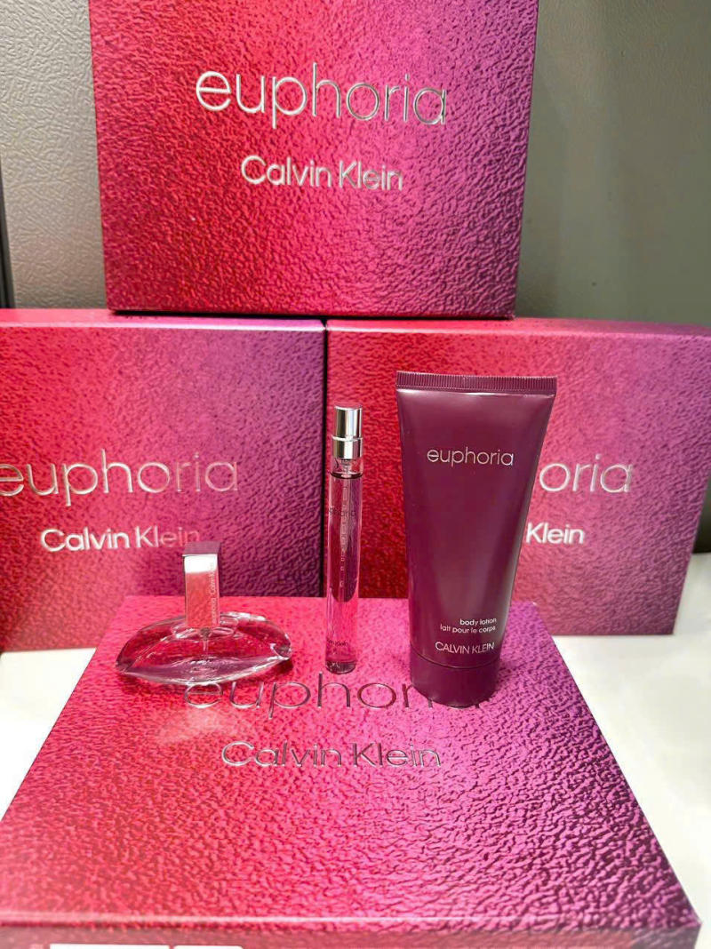 🌟 Set nước hoa Calvin Klein Euphoria EDP (100ml + 10ml + lotion 200ml) mang đến hương thơm bí ẩn, gợi cảm và đầy lôi cuốn. Với sự kết hợp hoàn hảo giữa nước hoa, dưỡng thể và phiên bản mini, bộ sản phẩm giúp nàng luôn quyến rũ, tự tin và tỏa sáng.