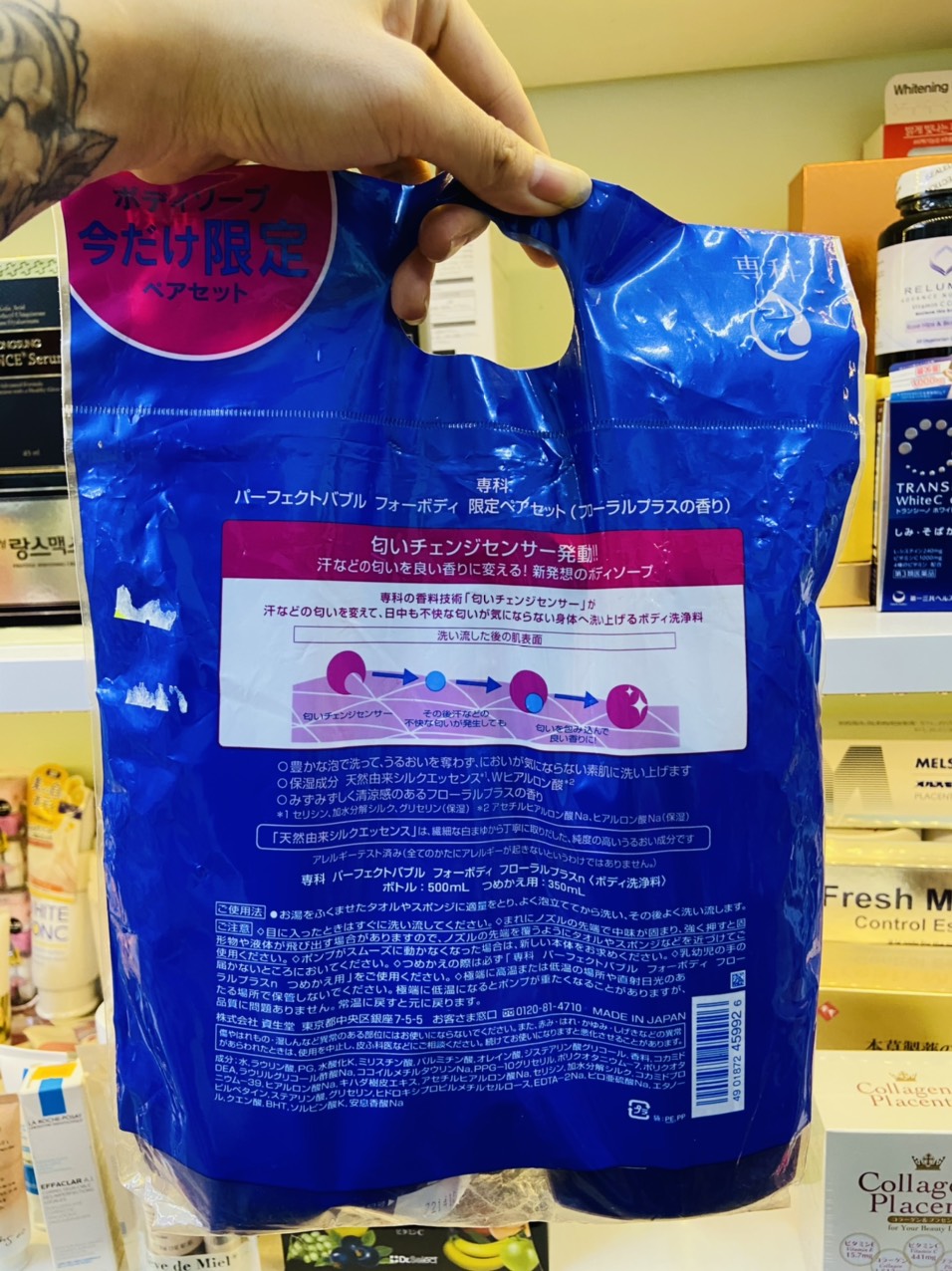 Không chỉ vậy, sữa tắm dưỡng trắng da Shiseido Perfect Bubble for Body Floral+ sét 2 còn có công dụng sát khuẩn nhẹ nhàng, thanh tẩy da và làm trắng da một cách tự nhiên. Sản phẩm không có chứa các chất tạo màu, hóa chất bảo quản nên có thể phù hợp được với mọi làn da.