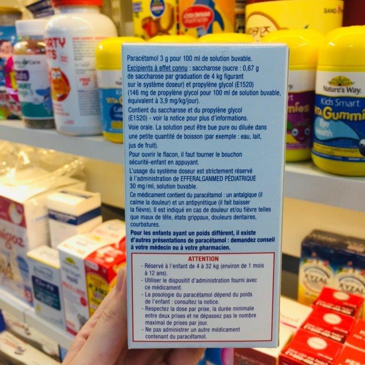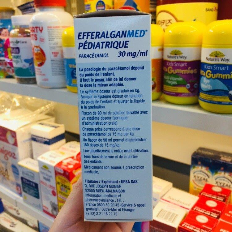 Efferalgan Med Pediatric 30 mg / ml trong chai 90 ml là thuốc hạ sốt và giảm đau cho trẻ từ 1 đến 12 tháng (4 - 32 Kg).