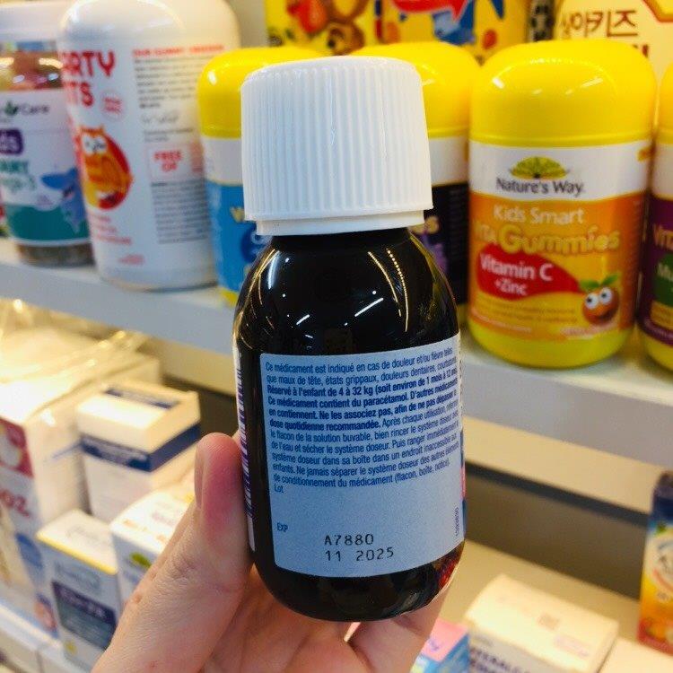 Thuốc này ở dạng dung dịch uống chủ yếu chứa paracetamol.