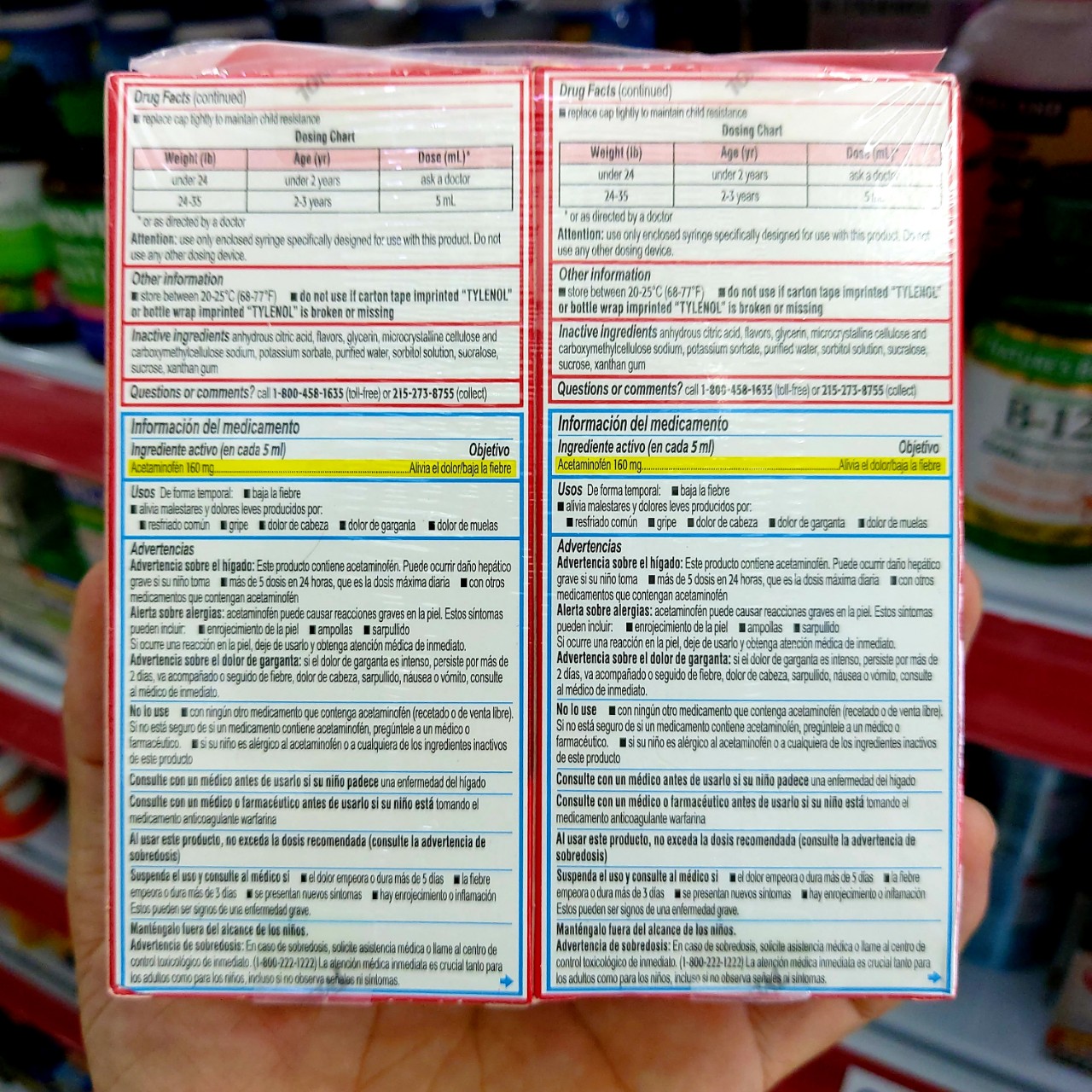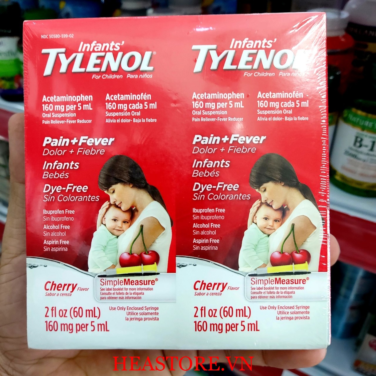 - Siro Children’s Tylenol Pain + Fever chứa 160 miligam acetaminophen mỗi liều 5ml. Sản phẩm này là để giảm sốt và giảm đau tạm thời cho những cơn đau nhức nhẹ do cảm lạnh thông thường, cúm, đau họng, đau đầu và đau răng. Siro giảm đau hạ sốt Children’s Tylenol Pain+Fever hoạt động nhẹ nhàng trên dạ dày và dành cho trẻ em từ 2 tuổi đến 11 tuổi.