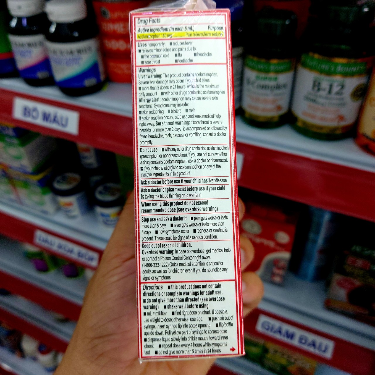 - Thành phần: Acetaminophen – 160 mg (Pain Reliever/Fever Reducer)