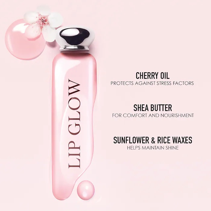 Son dưỡng môi Dior mang tính biểu tượng được tích hợp công nghệ phục hồi màu sắc thích ứng với độ pH của môi để mang lại làn da sáng tùy ý trong tối đa sáu giờ. Với dầu anh đào, bơ hạt mỡ và sáp hoa hướng dương, Lip Glow cung cấp cả màu tùy chỉnh và chăm sóc môi. Nó có sẵn trong một hộp đựng thời trang cao cấp và có các sắc thái phù hợp với mọi tông màu da.