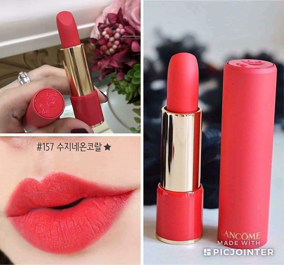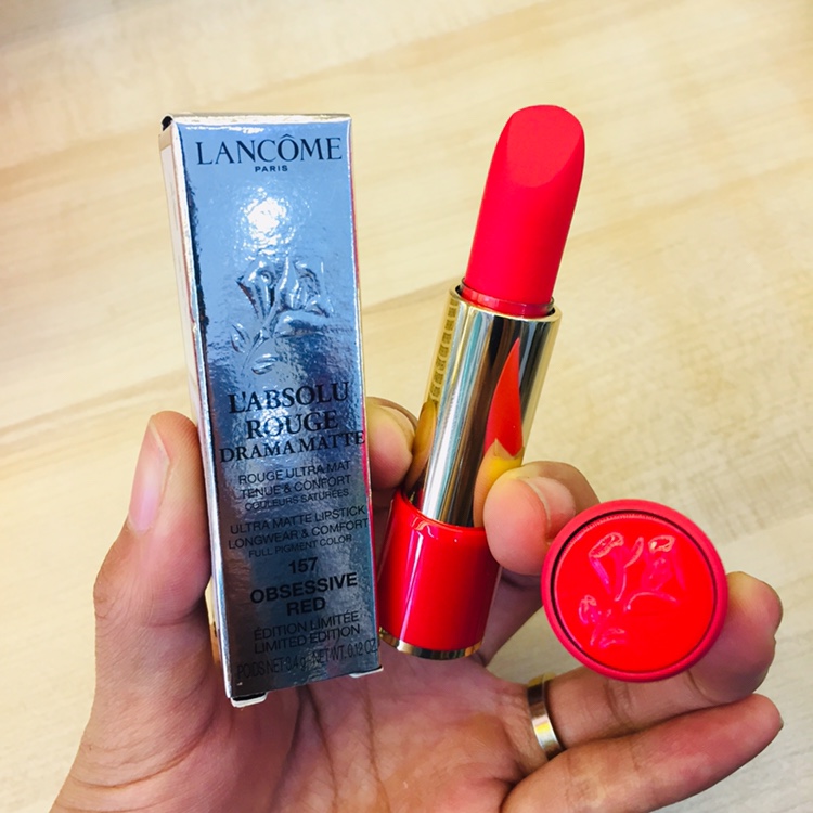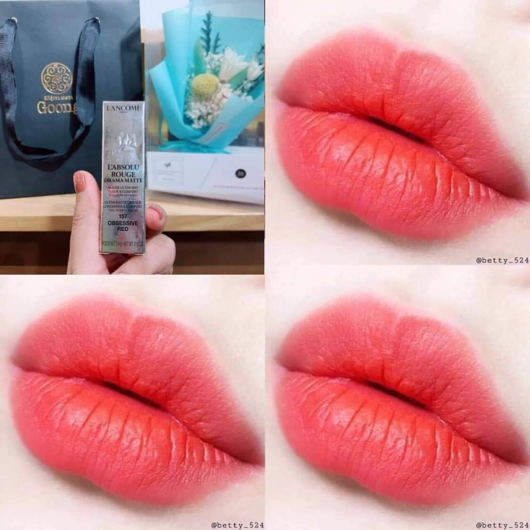 😍Lancome L'Absolu Rouge màu 157 Obsessive Red Drama Matte thuộc phiên bản giới hạn trong bộ bưu tập son của Lancome, có sắc đỏ hồng cam mang đến vẻ đẹp trẻ trung,nữ tính và ngọt ngào.