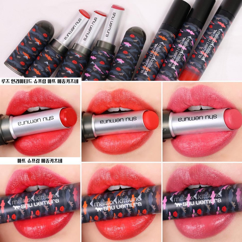 Bộ sưu tập son Shu Uemura X Maison Kitsune Rouge Unlimited Supreme Matte mang đến rất nhiều sắc son từ hot đến cực hot, bao gồm 4 dòng: Red Camo, Pink Camo, Orange Camo, Berry Camo. Dù nàng có theo phong cách nào đi chăng nữa thì vẫn có thể hài lòng với bộ sưu tập màu son hoành tráng này.