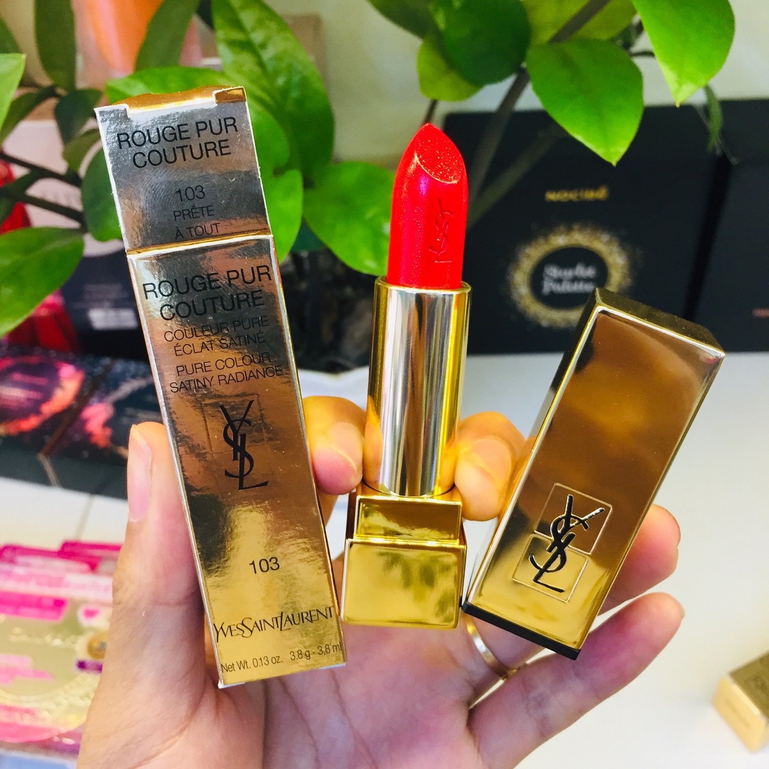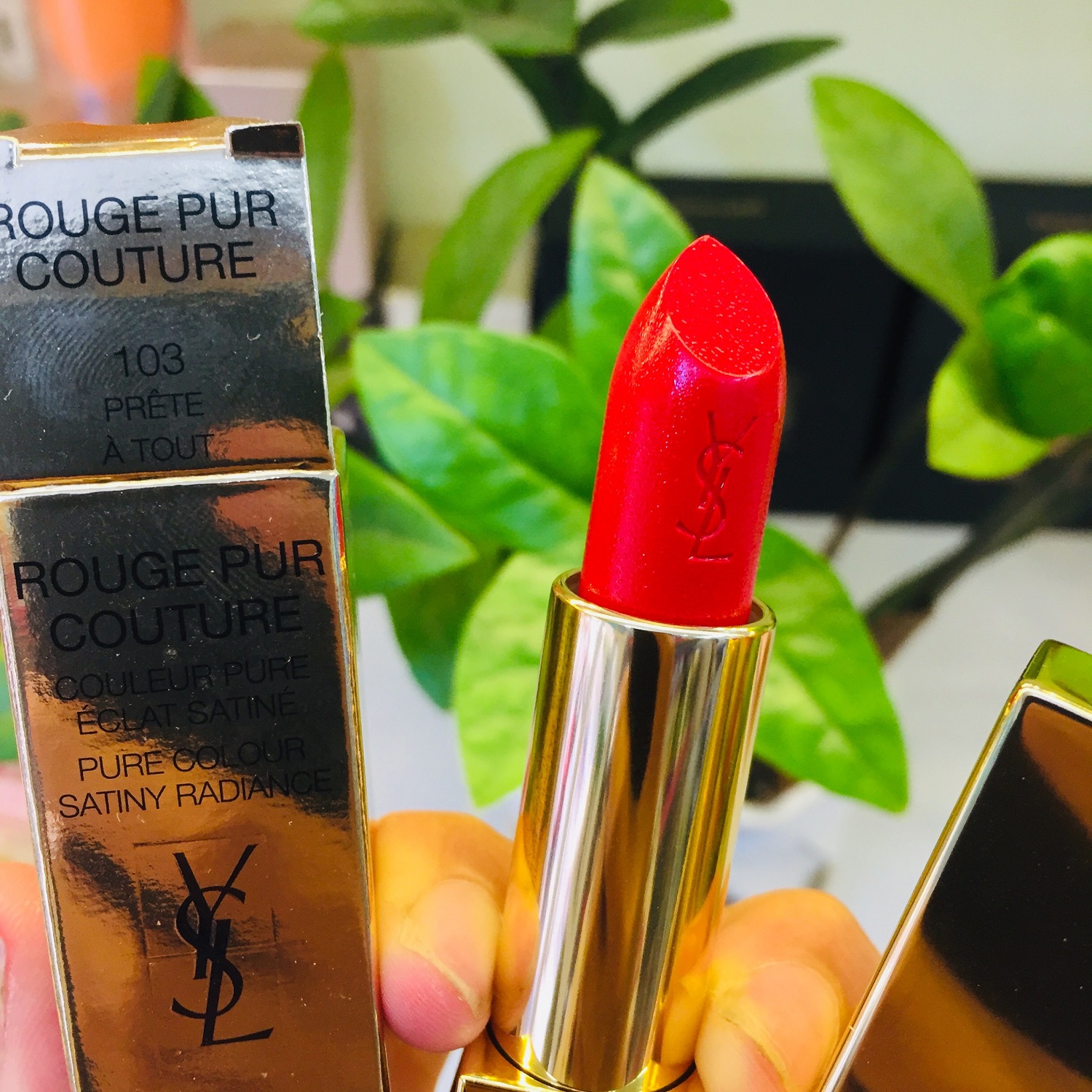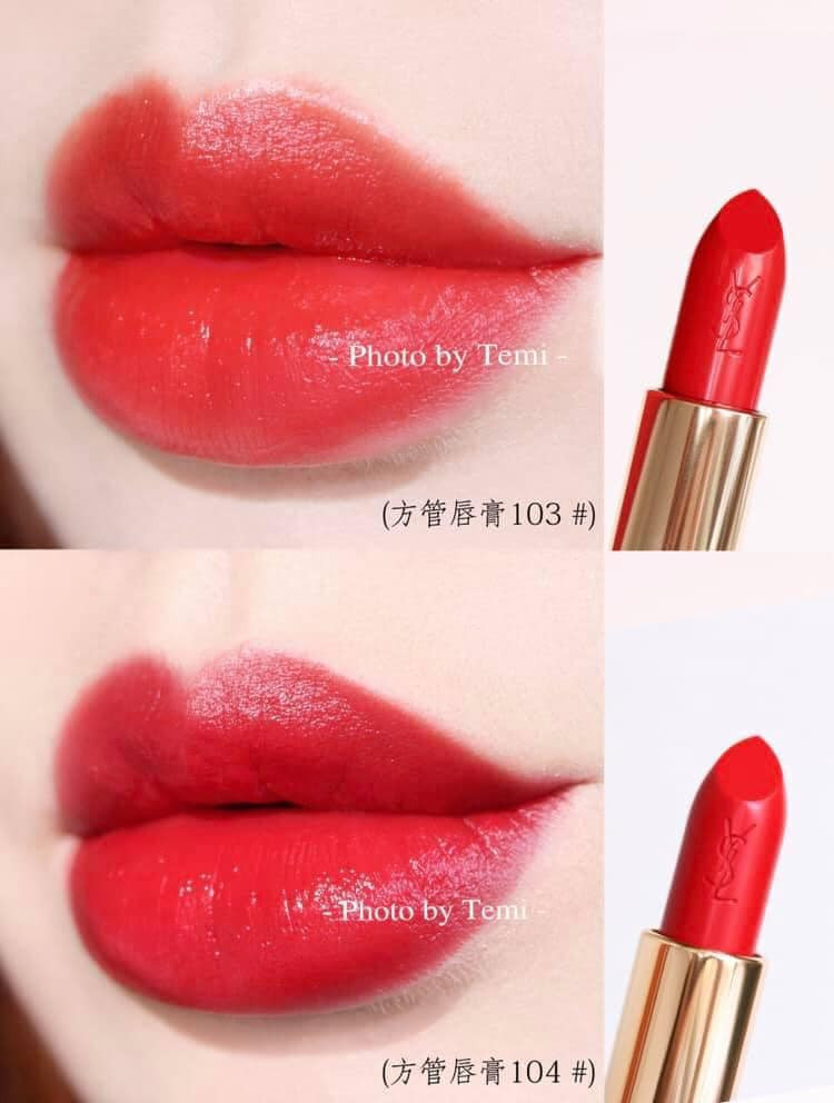 Màu lên bao đẹp - Son YSL Rouge Pur Couture 103 Prete A Tout nằm trong bộ sưu tập son môi mới nhất của Yves Saint Laudrent. Son YSL 103 với sắc đỏ tươi pha chút ánh cam nhẹ, màu son lên môi rát sang trọng, tô điểm cho đôi môi thêm rạng ngời và độ che phủ tốt, khiến chị em mê mẩn thỏi son này.