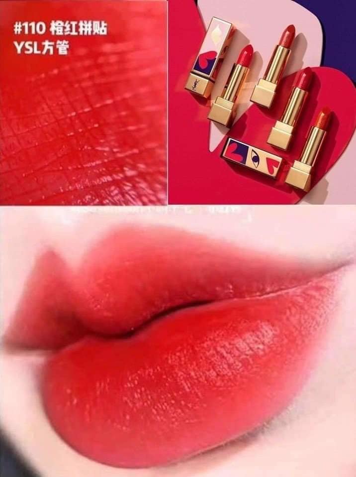 YSL vừa trình làng thêm một dòng son Limited Edition. Bộ sưu tập YSL Rouge Pur Couture Love Collector’s Edition hội tụ 4 sắc đỏ lộng lẫy nhất, chất satin che phủ đầy đặn, màu sắc chân thực chỉ sau một đường thoa . Thiết kế Iconic vỏ vàng vuông vắn khoác lên mình lớp áo mới độc đáo, tôn vinh nghệ thuật và tình yêu, vừa nhìn đã như bị gây mê. Son YSL 110 Red Is My Savior ghi danh vào bảng vàng 4 cây son điệu nghệ này.