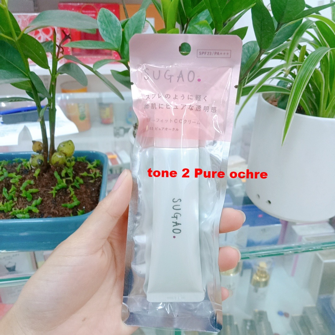 - SUGAO AIR FIT CC CREAM SMOOTH PURE OCHRE với lớp kem màu nude nhẹ nhàng hòa cùng với màu da giúp da đều màu hơn, phù hợp với những cô nàng thích da trắng một tông, tự nhiên và ửng hổng trong nắng.