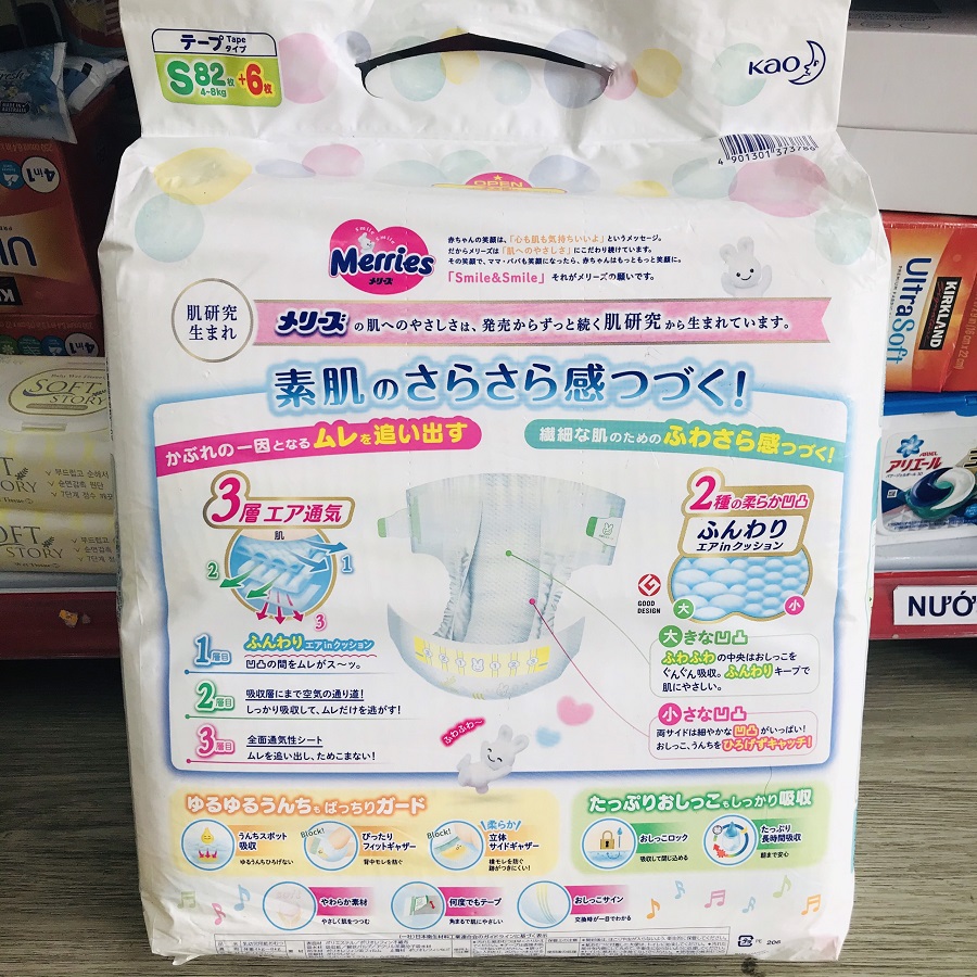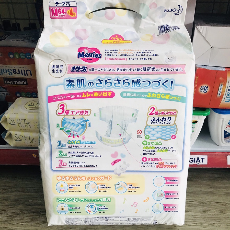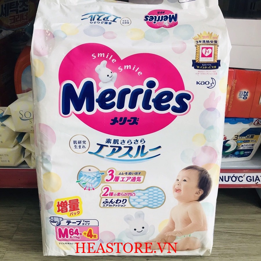Tã dán Merries được làm từ nguyên liệu bông tự nhiên theo công nghệ hiện đại không dùng chất bảo quản an toàn cho làn da của bé. Với thiết kế ôm vừa lấy cơ thể của bé, cùng khả năng siêu thấm hút, siêu thông thoáng, từng miếng tã Merries sẽ giúp bé thoải mái vận động hay có những giấc ngủ ngon mỗi ngày. Sản phẩm sẽ trở thành trợ thủ đắc lực của mẹ trong việc chăm sóc sức khỏe bé yêu từ những năm tháng đầu đời.