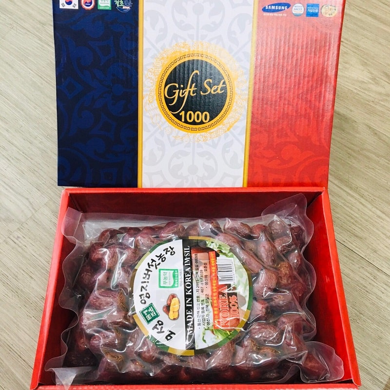 Táo Đỏ Sấy Khô Samsung Gift Set Hàn Quốc (1kg) là loại táo có vị ngọt đậm tự nhiên, khi còn non, quả có màu xanh lục giống với loại táo chua thường trồng phổ biến ở Việt Nam, vỏ trơn bóng có mùi vị tương tự như quả táo tây, khi chín táo có màu sẫm đỏ hay tía. Các sản phẩm do Hàng Nhập Khẩu Á Âu nhập và phân phối tại thị trường Việt Nam được lọc chọn cẩn thận từ những cây và quả to đẹp nhất, sản phẩm không nông dược, đảm bảo chất lượng an toàn vệ sinh thực phẩm theo chuẩn Hàn Quốc.