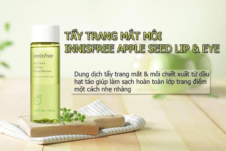 Dầu Tẩy Trang Mắt & Môi Apple Seed Innisfree -100ml Phù hợp với mọi loại da dùng cho vùng mắt và môi đặc biệt phù hợp với làn da dầu, dễ bị mẫn cảm, không để lại nhờn trên mặt sau khi sử dụng.
