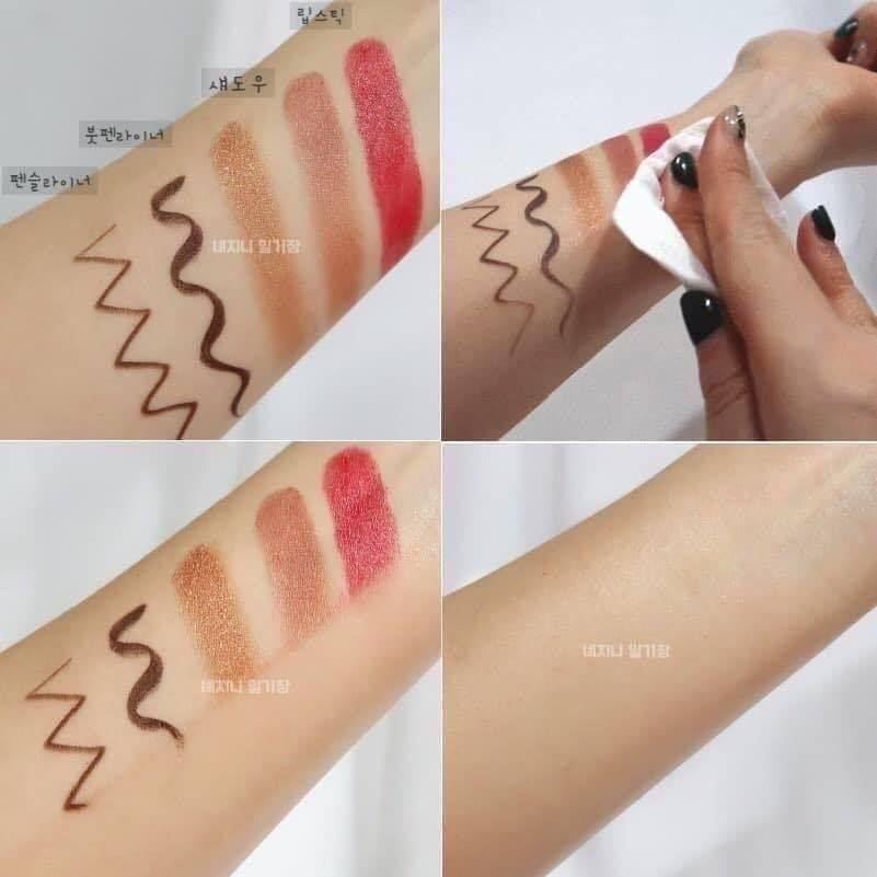Sản phẩm gồm hai lớp: một lớp nước và một lớp dầu. Trước khi dùng thì lắc đều, sau đó thấm ra bông tẩy trang và lau mắt, môi.
