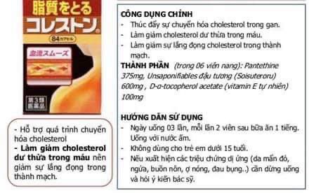 - Viên giảm mỡ máu cholesterol Hisamitsu với liều hàng ngày cho người lớn, hỗ trợ chuyển hóa choleserol trong gan, làm giảm cholesteral dư thừa trong máu và làm giảm sự lắng đọng trong thành mạch.