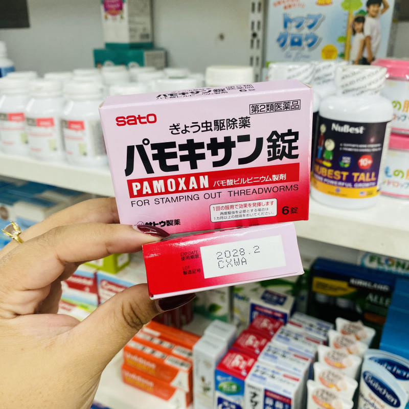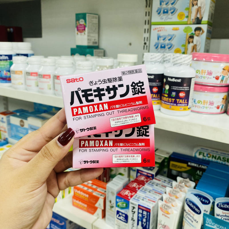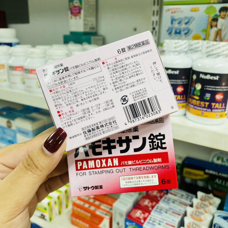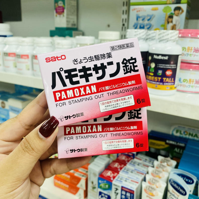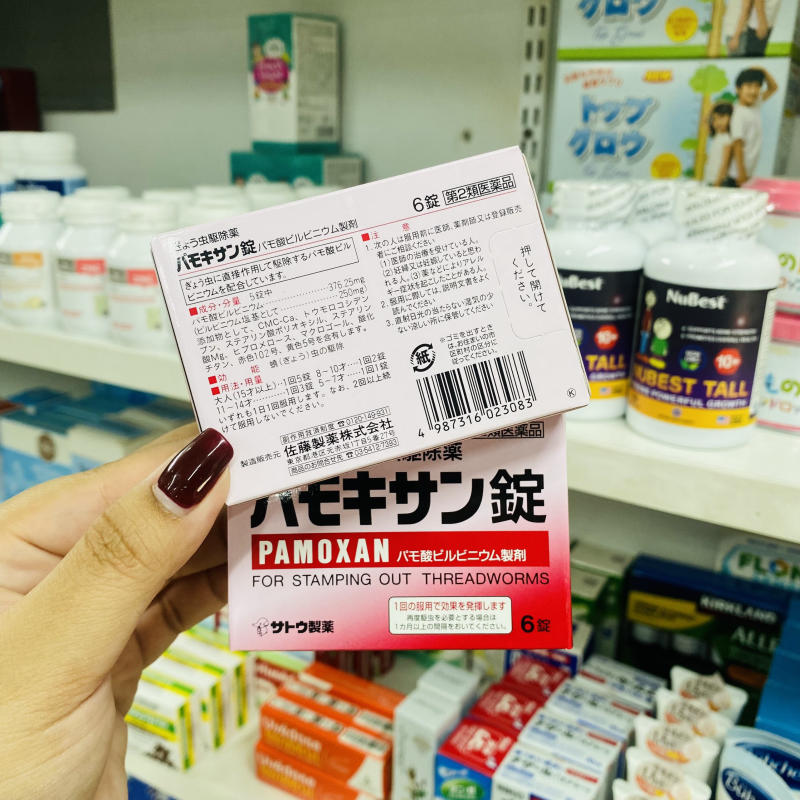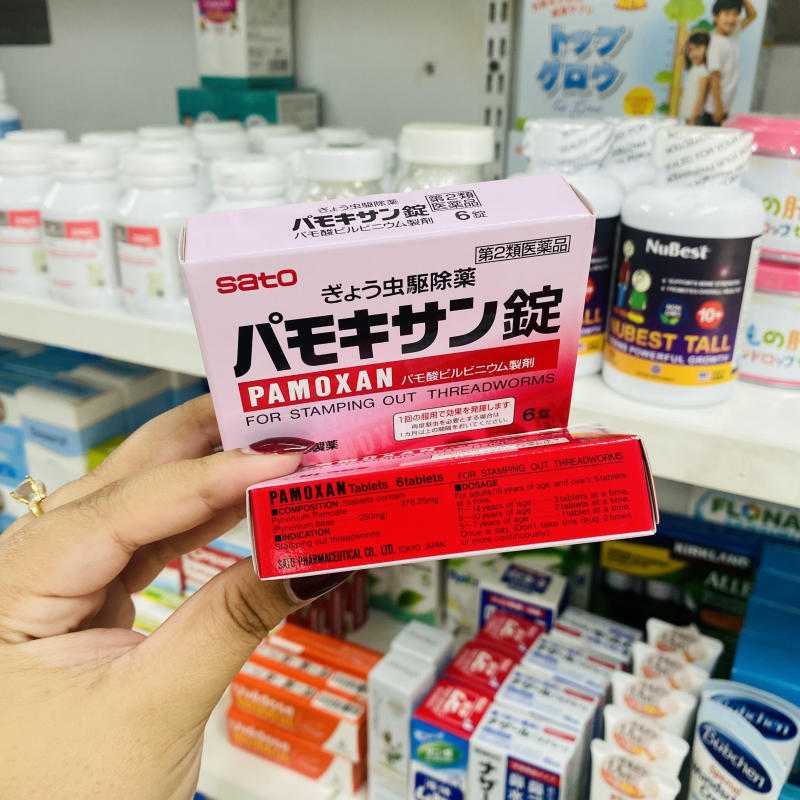 ✤ Pamoxan Sato vỉ 6 viên được nghiên cứu và điều chế bởi các chuyên gia Nhật Bản. Hàm lượng Pyruvinium Pamoat không hấp thu vào ruột mà sẽ trực tiếp tiêu diệt các sinh vật ký sinh trong ruột, rồi đào thải ra ngoài, nên hiệu quả cao mà an toàn tuyệt đối cho sức khỏe.