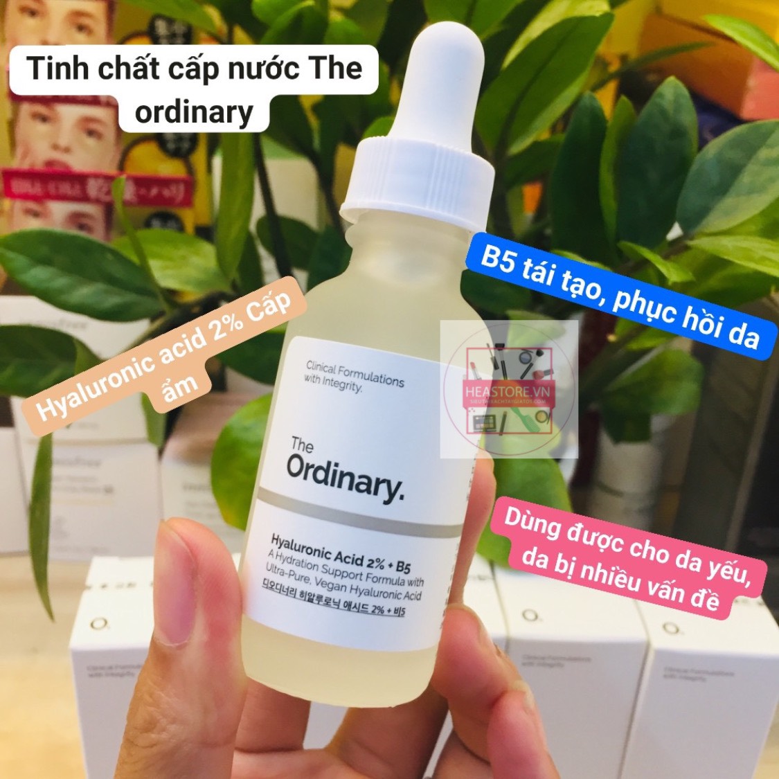 Serum The Ordinary Hyaluronic Acid 2% + B5 là sản phẩm phục hồi, hỗ trợ dưỡng ẩm, cấp nước cực kì an toàn cho da với 12 dạng thức của Hyaluronic Acid. Sản phẩm được nhiều chị em yêu thích bởi thành phần an toàn và lành tính, không chứa chất bảo quản.