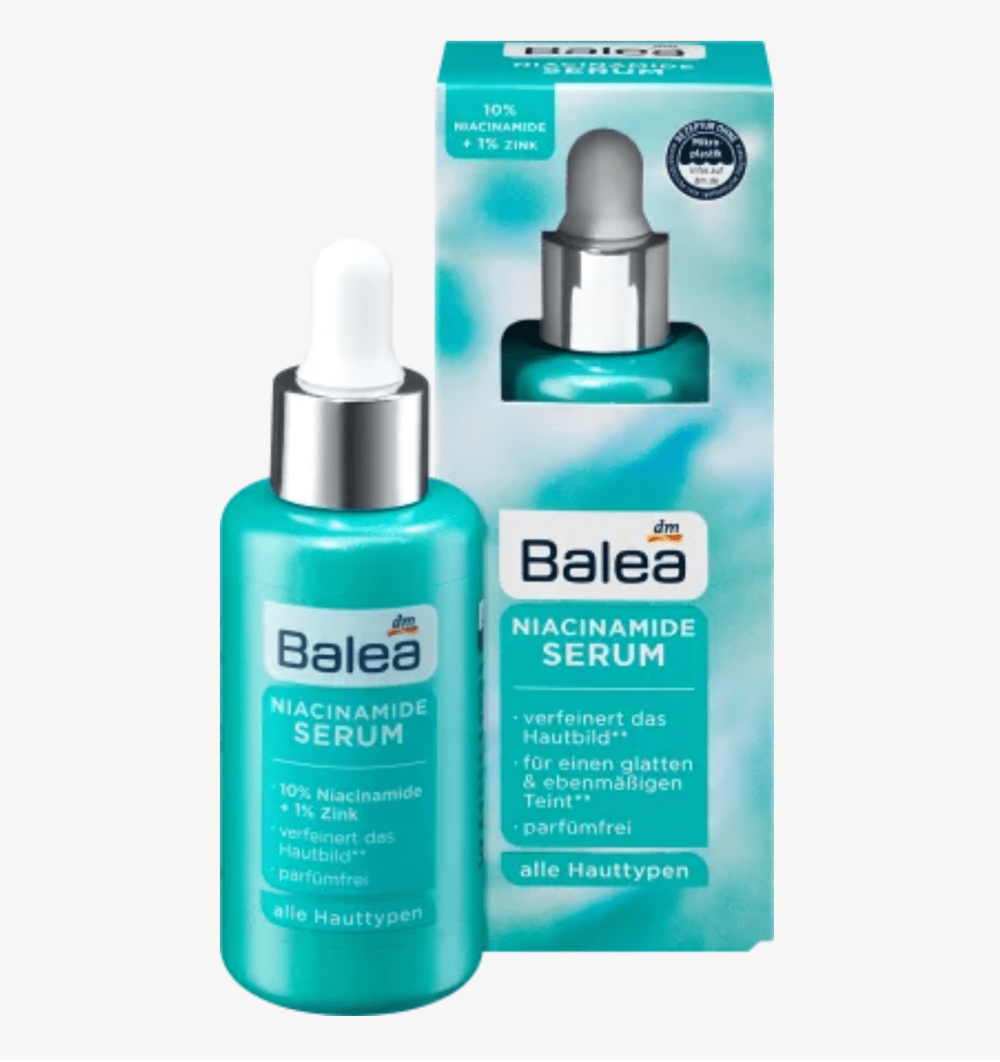 Balea Niacinamide Serum cải thiện làn da và đảm bảo bề mặt da mịn màng và trông thấy rõ rệt.