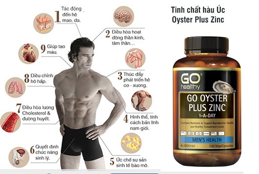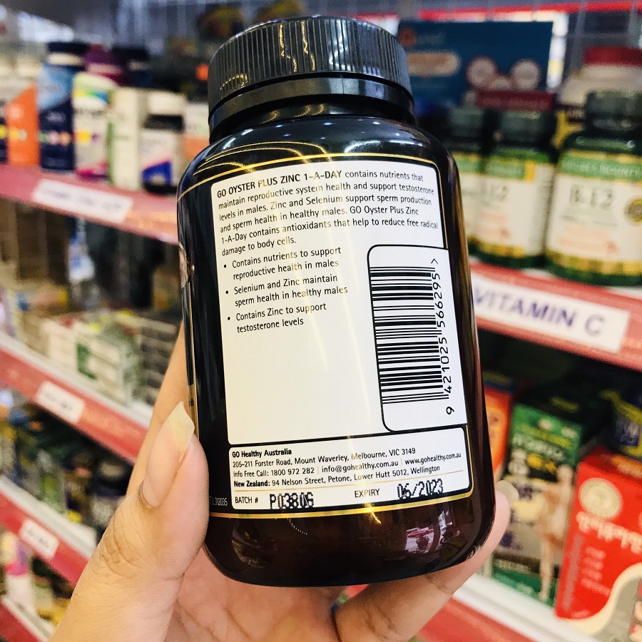 Sản phẩm được nhập khẩu chính hãng bản địa từ New Zealand có chứa Tinh chất hàu Go Healthy oyster plus zinc dùng tốt cho nam giới trưởng thành, người vô sinh và người sinh lý yếu.