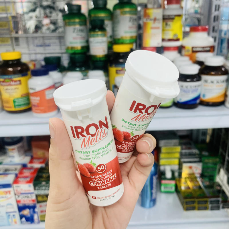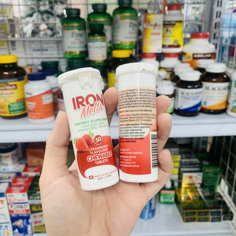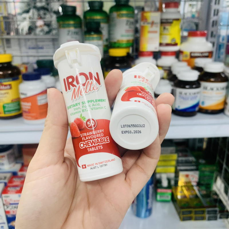 ☞ Iron Melts Chewable 50 viên bổ sung sắt, acid folic, vitamin C và vitamin b12 cần thiết cho cơ thể
