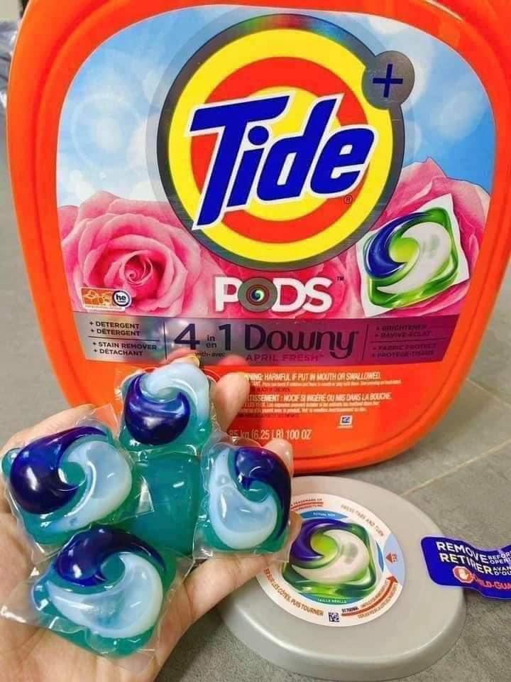 ☘️ Viên giặt Tide Pods 4 trong 1 hòa tan trong nước nóng và cả nước lạnh.