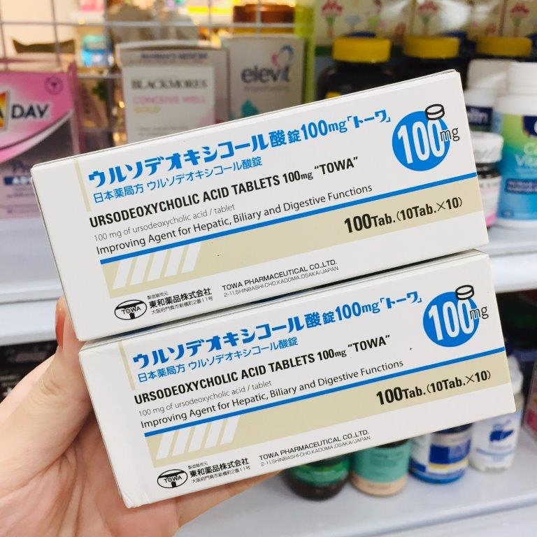 Viên uống cải thiện chức năng gan, hòa tan sỏi mật Towa Ursodeoxycholic Acid 100mg dành cho cho người bệnh gan mãn tính, xơ gan, viêm xơ đường dẫn mật. Viên uống Towa Ursodeoxycholic Acid này làm tăng tiết mật và do đó cải thiện lưu lượng mật.
