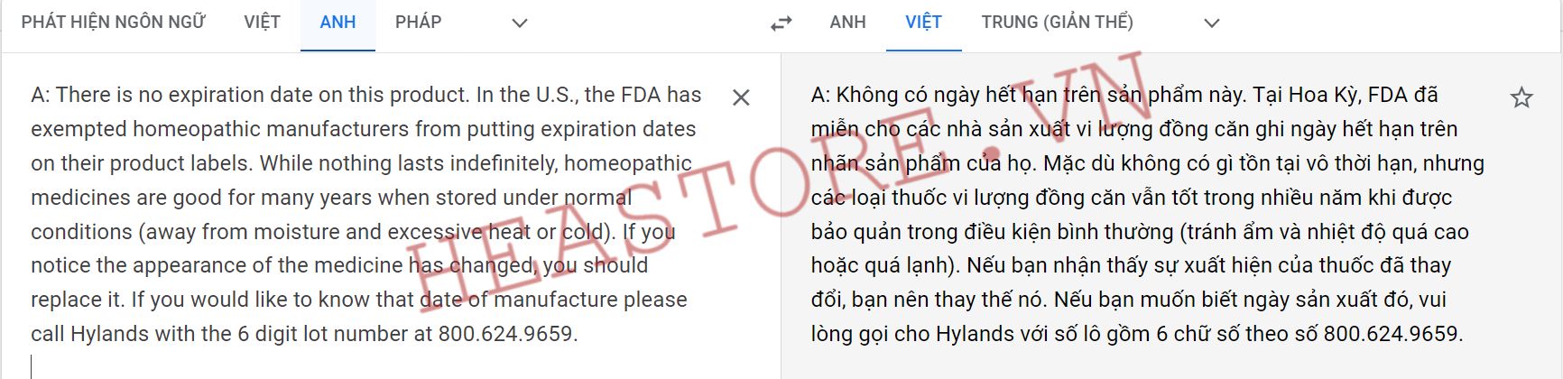 *Nhiều khách hàng thắc mắc hạn sử dụng của sản phẩm Hyland's. Heastore đã liên hệ và nhận được câu trả lời từ nhà sản xuất nội dung như sau:
