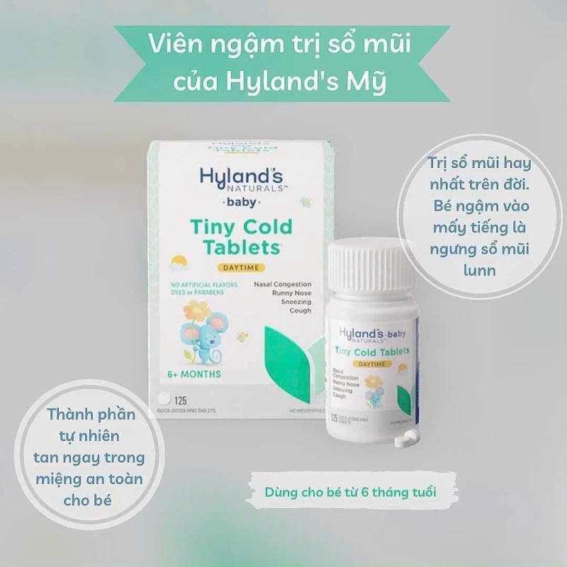 Viên ngậm sổ mũi Hyland's Tiny Cold Tablet dùng ban ngày.