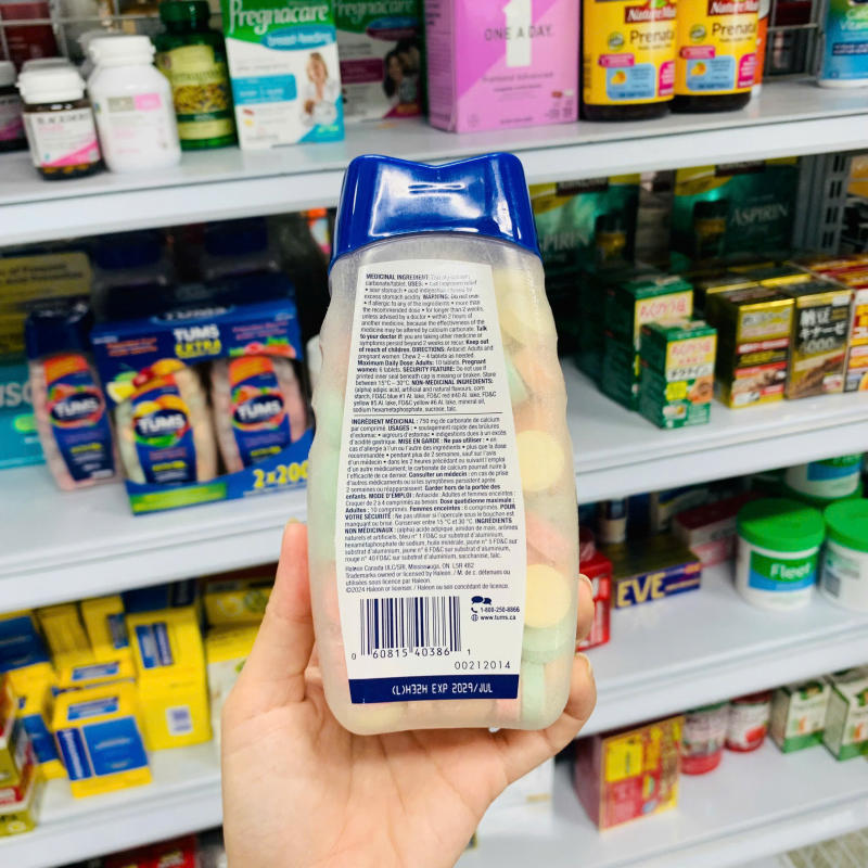 - Tums Extra Strength có vị trái cây rất thơm ngon, dễ uống với công thức tăng cường canxi, đây là nguồn bổ sung canxi rất hiệu quả cho cơ thể. Sử dụng Tums Extra Strength 250 viên bạn vừa có được thuốc trị các vấn đề về bao tử, vừa có được loại thuốc bổ sung canxi. Một chế độ ăn uống điều độ hợp lí và luyện tập thường xuyên sẽ giúp bạn duy trì cho xương luôn chắc khỏe, tránh được các nguy cơ phát triển bệnh loãng xương.
