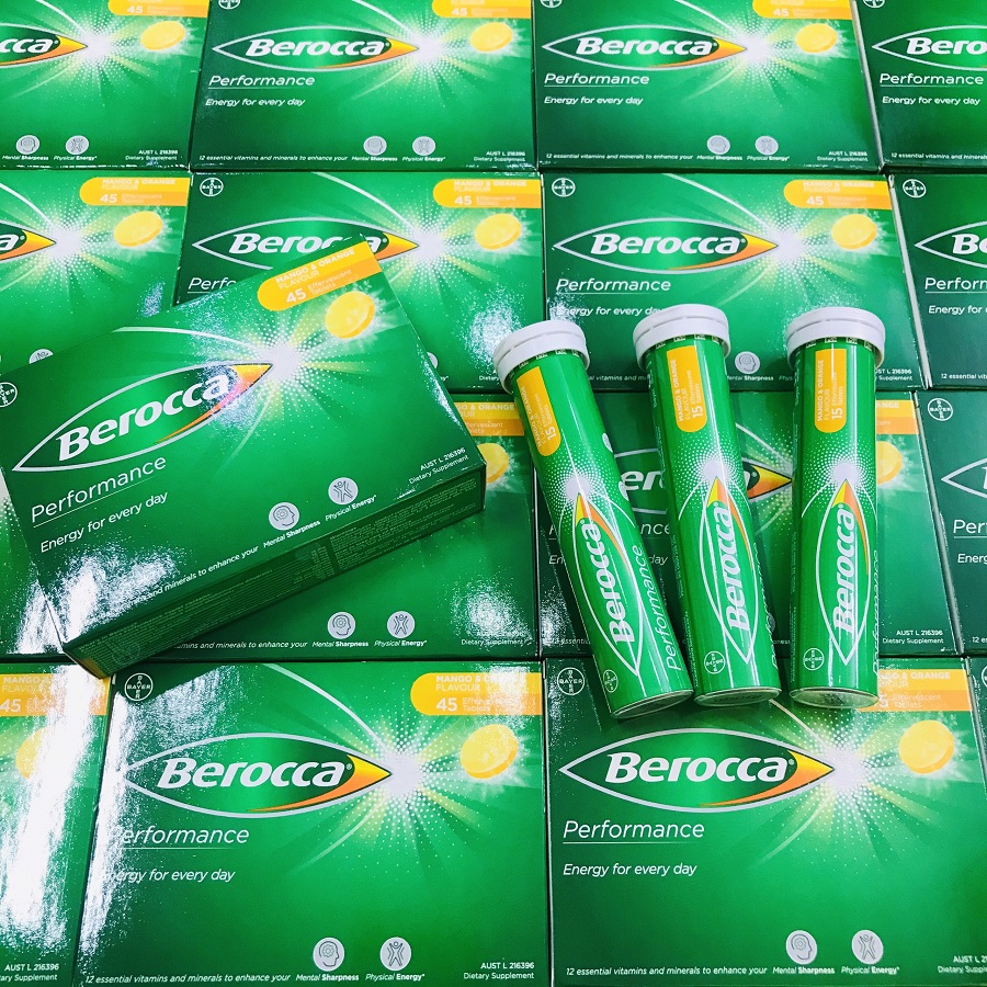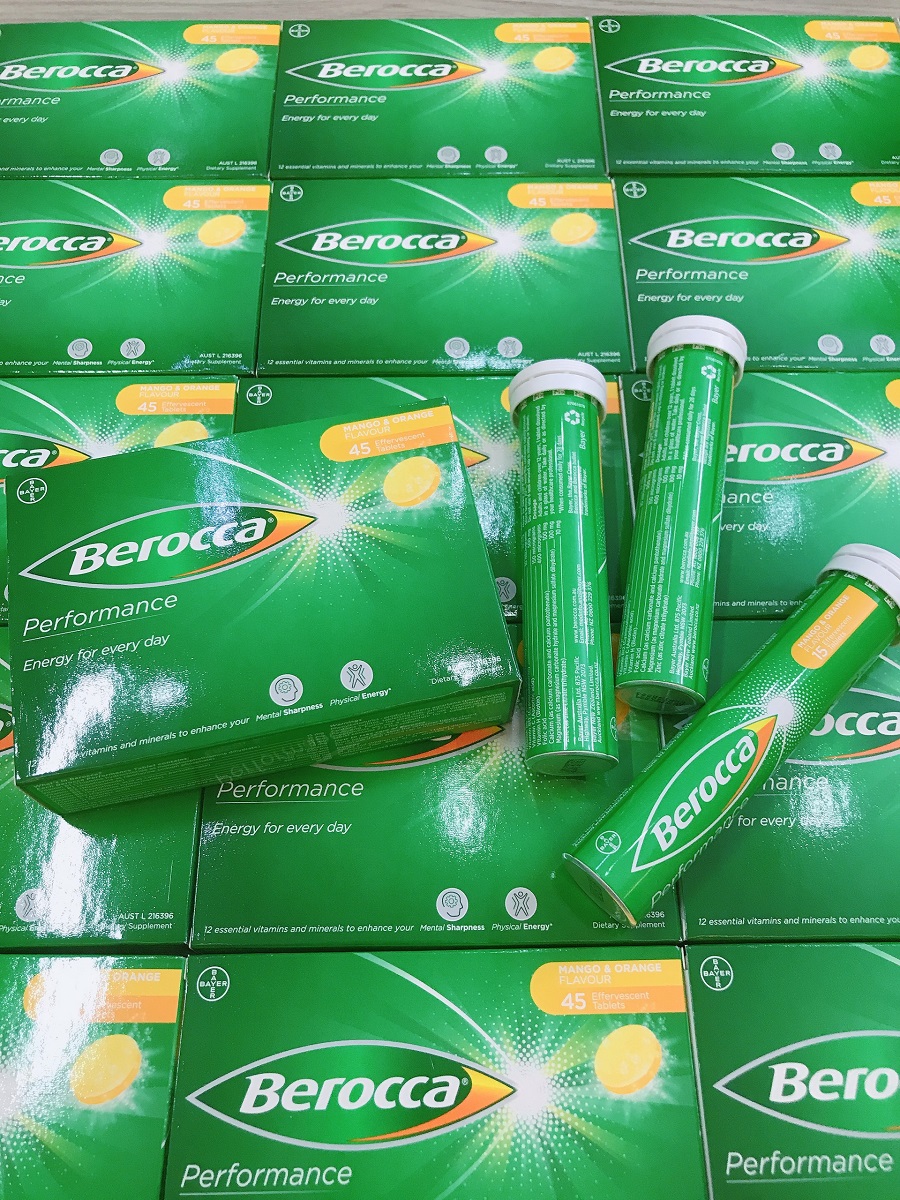 Berocca được bào chế dưới dạng viên sủi tan trong nước, có tác dụng để bổ sung các dưỡng chất rất tốt cho cơ thể bao gồm các vitamin B, C, một số hợp chất như magie, sắt, kẽm. Những dưỡng chất này đều rất cần thiết cho cơ thể, có tác dụng giảm tình trạng stress đồng thời để tăng cường sức đề và làm đẹp da hiệu quả.