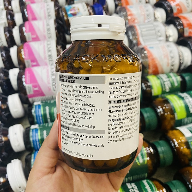 Viên uống Blackmores Joint Formula Advanced hỗ trợ làm giảm các vấn đề xương khớp và cải thiện khả năng vận động của khớp khi dùng lâu dài. Bên cạnh đó sản phẩm còn chứa khoáng chất mangan và boron là thành phần quan trọng giúp xương và khớp khỏe mạnh.