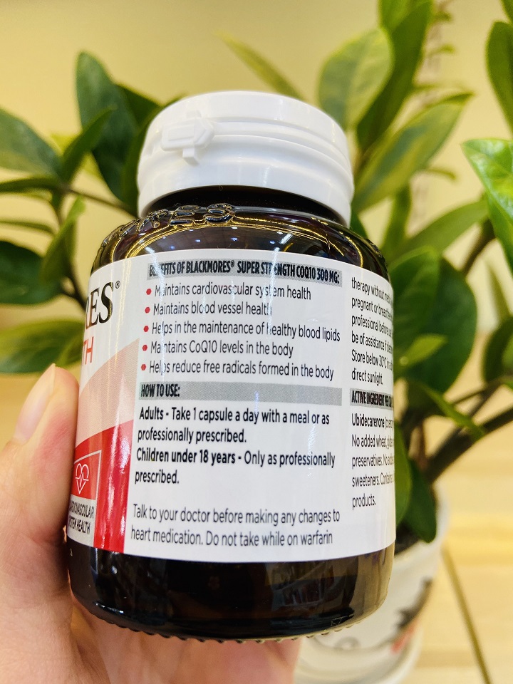 Blackmores Super Strength CoQ10 300mg là sản phẩm bồi bổ cơ thể, tốt cho tim mạch. Chỉ cần sử dụng 1 viên/ngày, người dùng có thể duy trì hệ thống tim mạch khỏe mạnh, phòng tránh nguy cơ mắc bệnh hiệu quả.