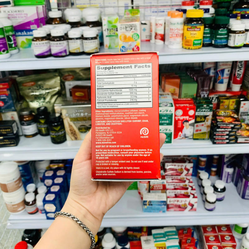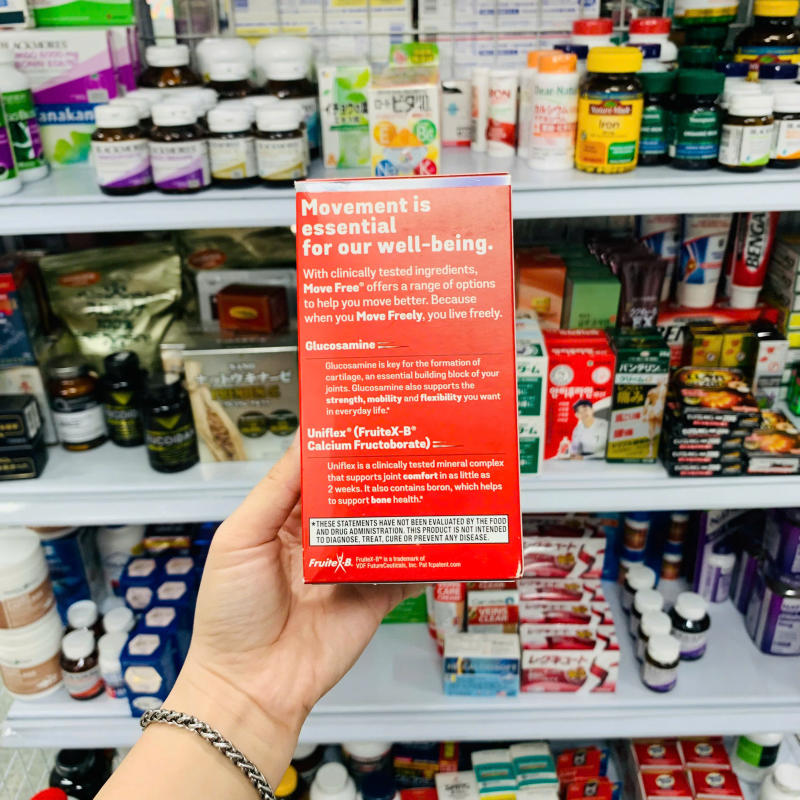 - Thành phần chính của Move Free Glucosamine & FruiteX-B là 4 vi chất được liệt kê ở trên với hàm lượng chi tiết và công dụng của từng thành phần như sau:
