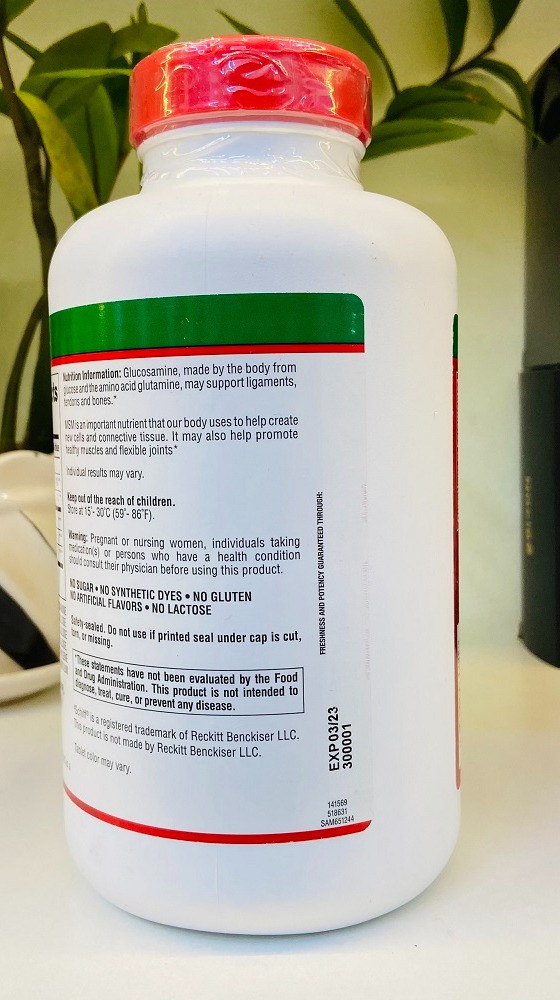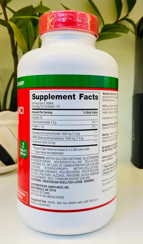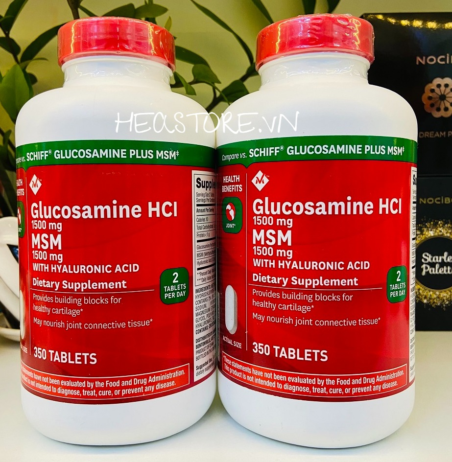 Viên thuốc khớp Member’s Mark chứa Glucosamine HCL 1500mg hỗ trợ gân, dây chằng, da, xương, móng và cơ. Đồng thời Member’s Mark bổ xương khớp kết hợp MSM 1500mg như một chất dinh dưỡng quan trọng giúp tái tạo tế bào và mô liên kết.