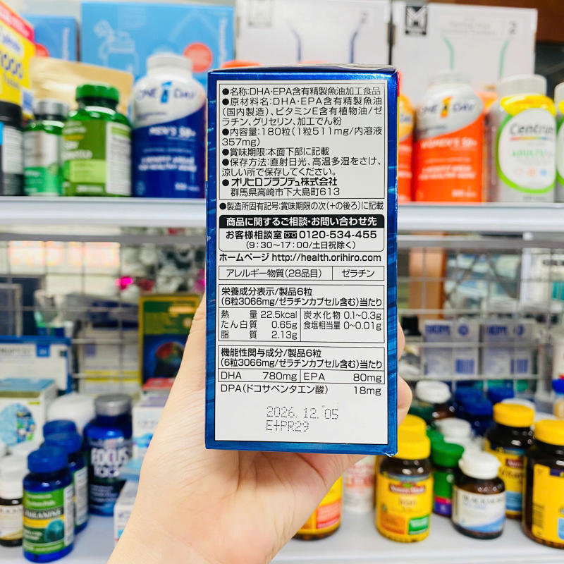 Trong 6 viên uống bổ não DHA EPA Orihiro 180 viên chứa: