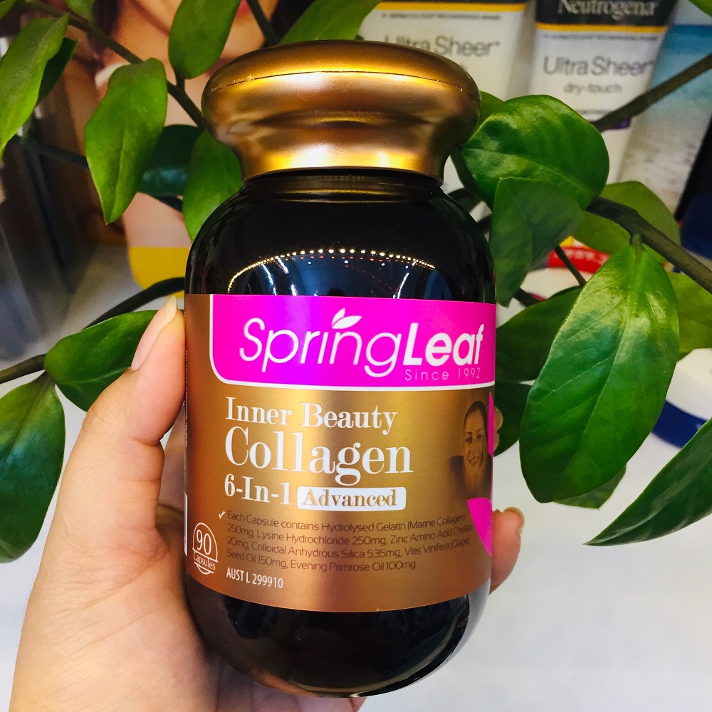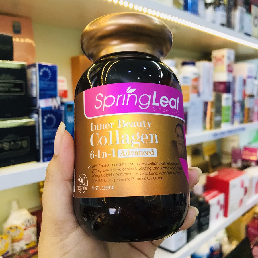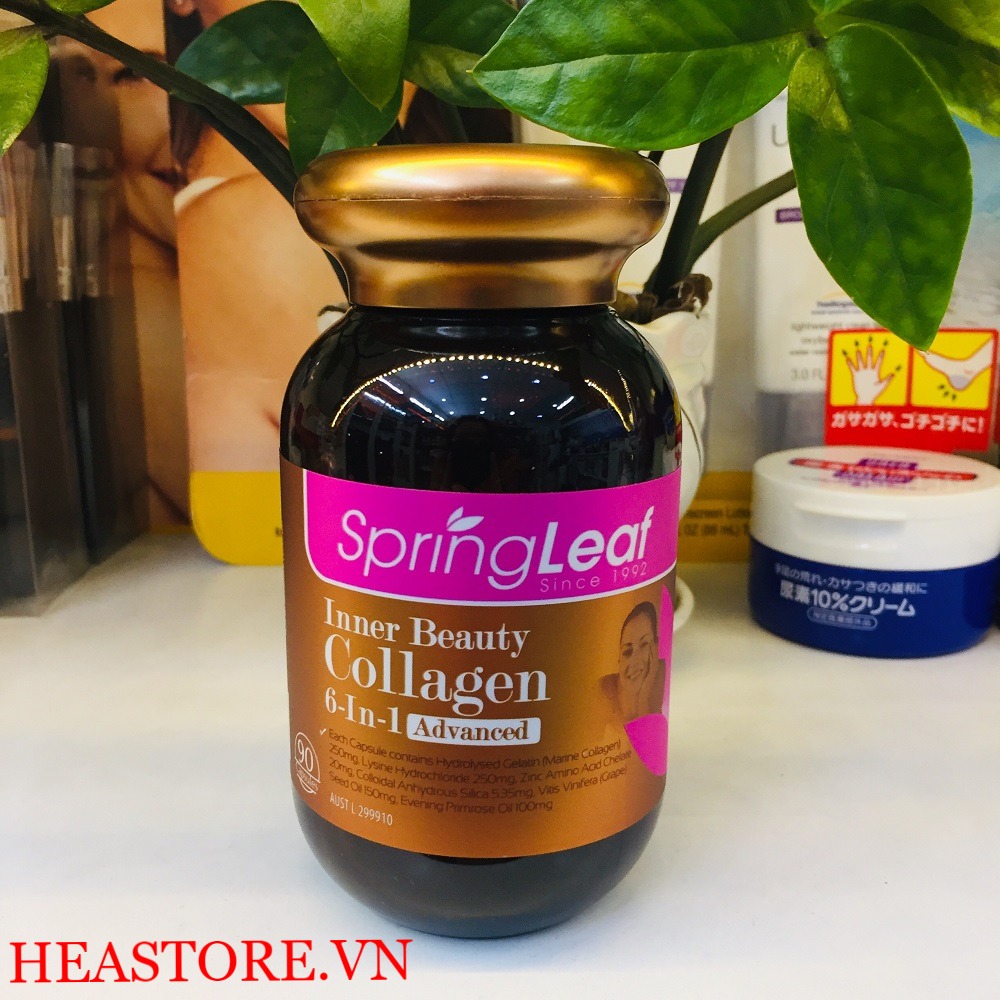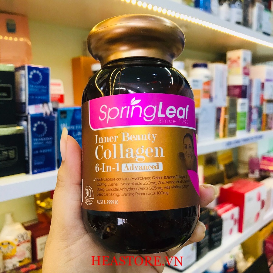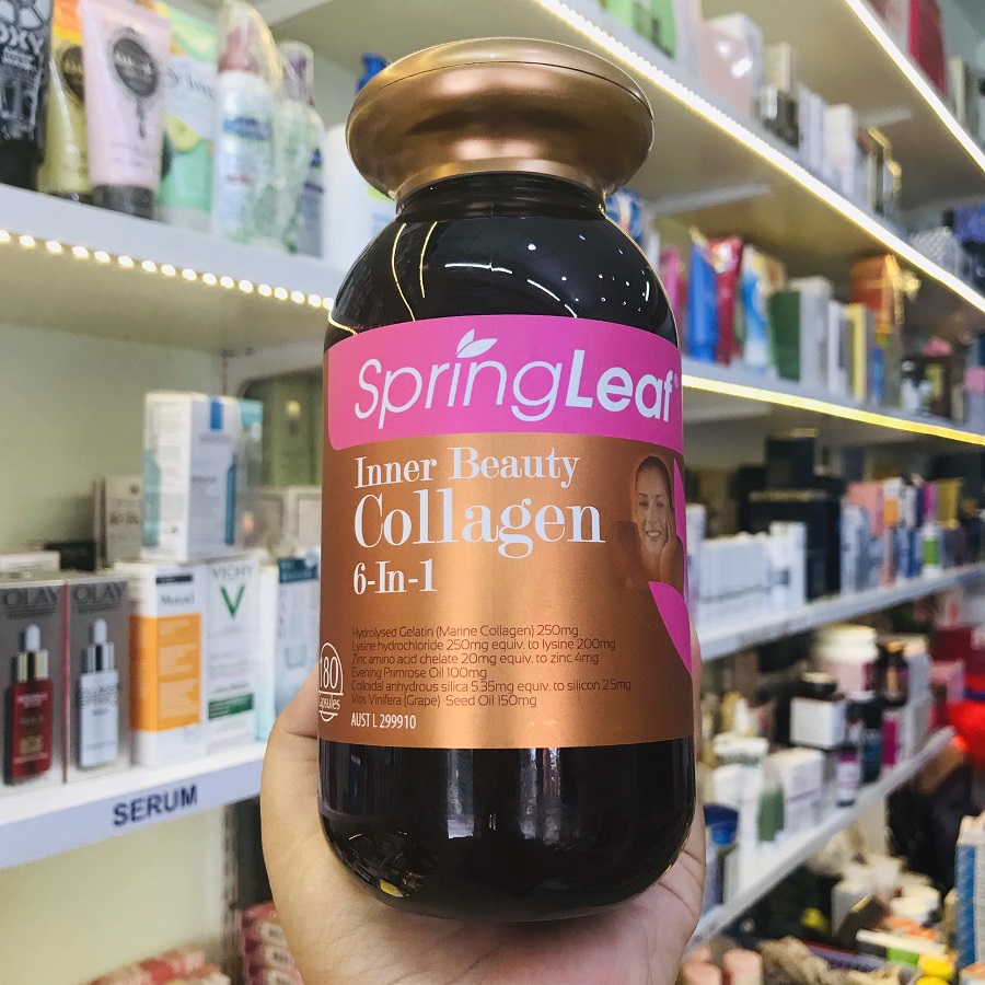 ➨Collagen 6 in 1 Spring Leaf có công thức kết hợp giữa collagen và các dưỡng chất làm đẹp da, chống lão hóa. Viên uống còn giúp hỗ trợ sản sinh collagen tự nhiên trong cơ thể và chống oxy hóa, chống lại các tác hại từ môi trường,…