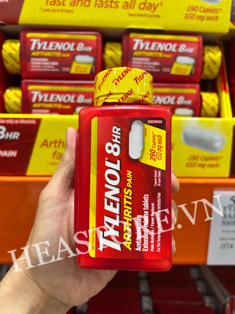 ✔ Viên uống giảm đau hạ sốt Tylenol 8Hr Arthritis Pain với hàm lượng Acetaminophen lên đến 650mg giúp chấm dứt các cơn đau: đau đầu, đau vai, đau răng, đau cơ, xương khớp nhẹ, đau do chấn thương,... trong vòng 8h