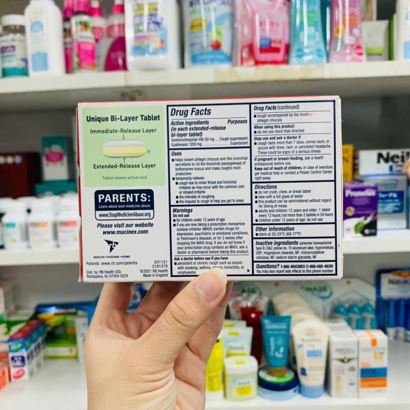 Mucinex DM Maximum Strength là dòng viên uống ho nổi bật tại Mỹ, được các bác sĩ và dược sĩ tin dùng trong việc hỗ trợ điều trị ho khan, ho có đờm, nghẹt ngực do cảm lạnh hoặc viêm đường hô hấp. Sản phẩm tác dụng kép 2 trong 1, giúp ức chế cơn ho và làm loãng đờm hiệu quả, cho cảm giác dễ thở rõ rệt.