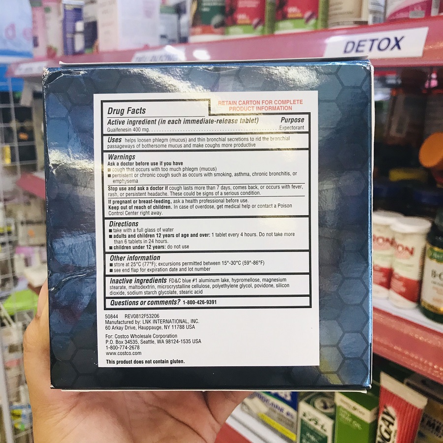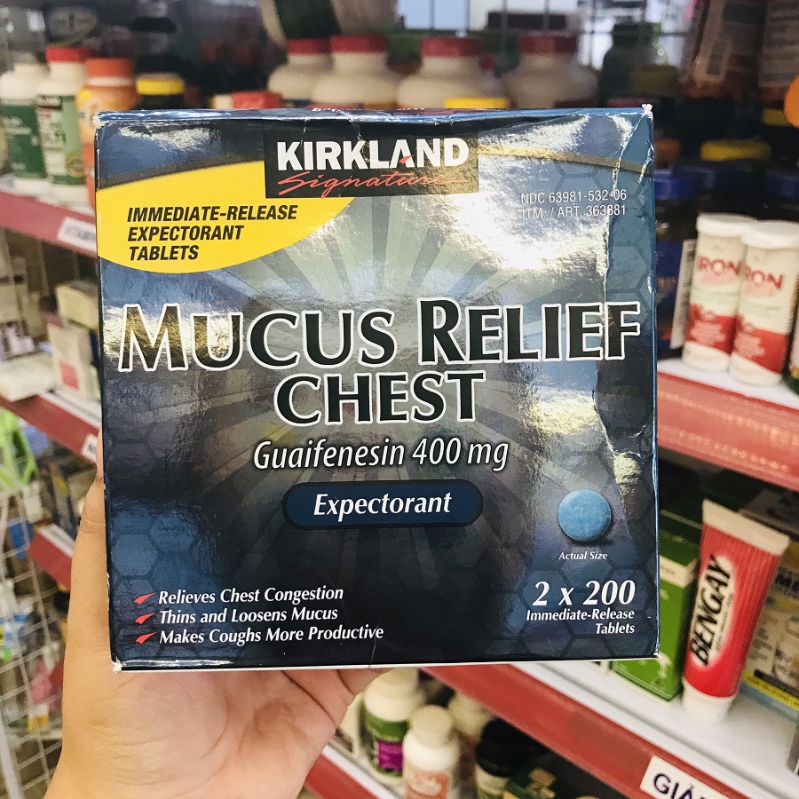 Có 1 thành phần hoạt chất trong Kirkland Signature Mucus Relief – Guaifenesin được sử dụng để điều trị ho và nghẹt mũi do cảm lạnh thông thường, viêm phế quản và các bệnh về hô hấp khác. Guaifenesin là một chất làm loãng và làm lỏng chất nhầy trong đường thở (giúp long đờm), cải thiện sự tắc nghẽn, và làm cho việc thở dễ dàng hơn và giúp cho cơn ho của bạn chuyển biến tích cực hiệu quả hơn.