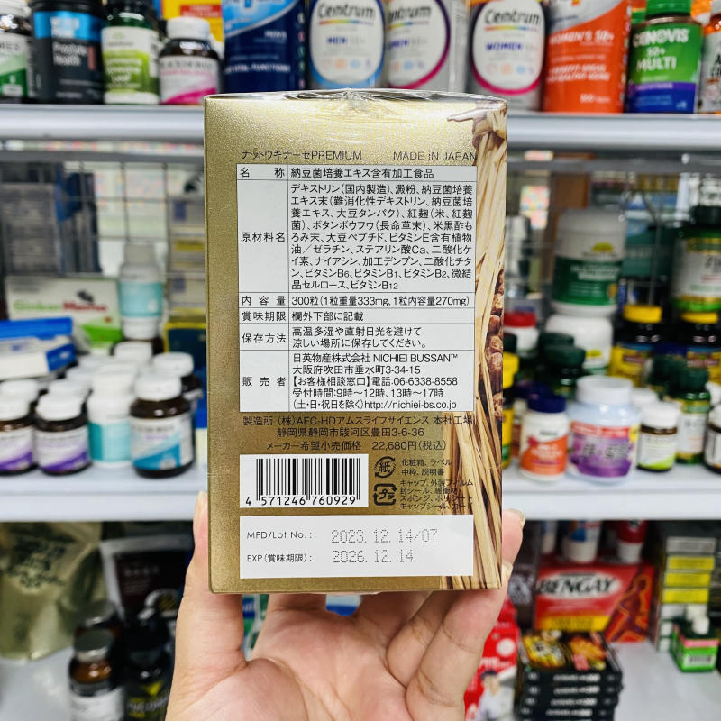 - Nichiei Bussan Nattokinase Premium là sản phẩm chất lượng được sản xuất theo công nghệ tiên tiến của Nhật Bản, đảm bảo tiêu chuẩn cao cấp và chất lượng hàng đầu. Đồng thời, cũng giúp cơ thể hấp thu tốt hàm lượng Nattokinase 1200FU mỗi ngày, mang đến hiệu quả nhanh chóng.