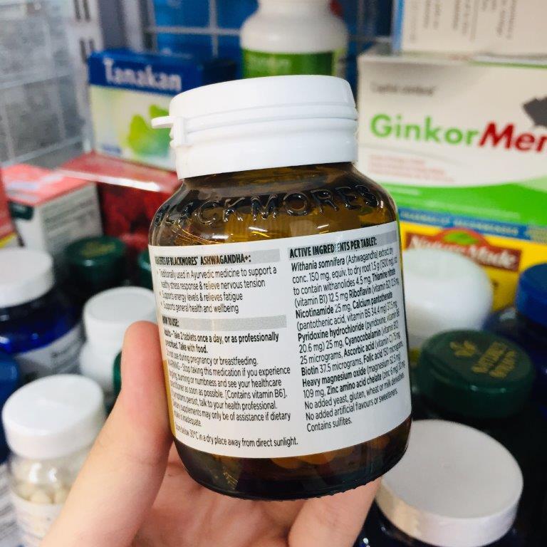 BLACKMORES ASHWAGANDHA được sử dụng theo truyền thống trong y học Ayurveda để giảm các triệu chứng căng thẳng & giúp cơ thể thích nghi với căng thẳng.