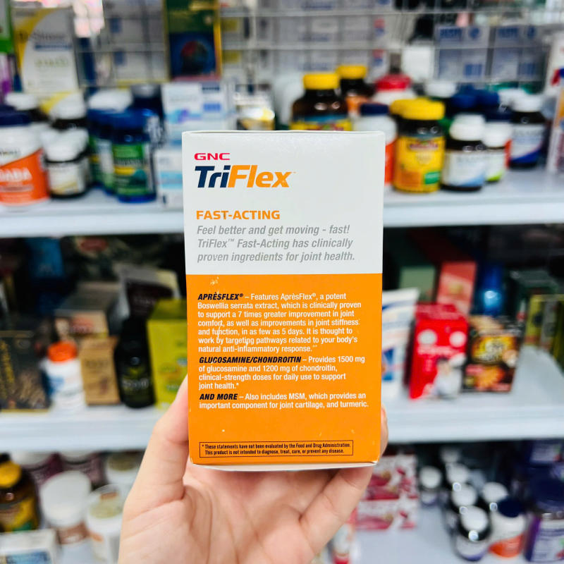 Viên uống GNC Triflex Fast-Acting không phải là thuốc chữa bệnh. Sản phẩm hỗ trợ giảm đau, bảo vệ và phục hồi sụn khớp, giúp duy trì sức khỏe khớp và làm giảm triệu chứng thoái hóa khớp.