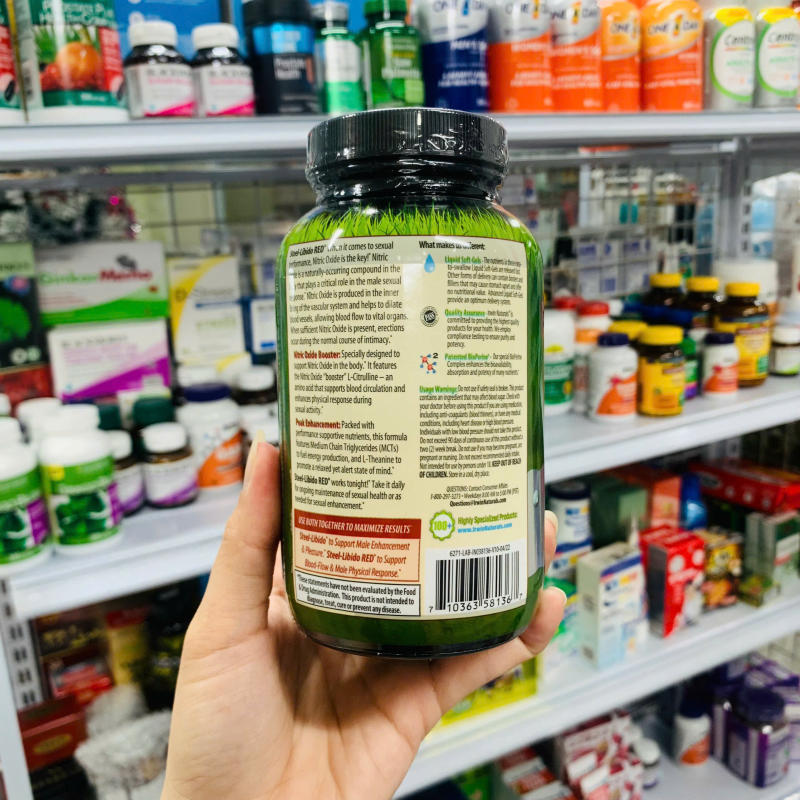 Steel-Libido Red Magnum Blood-Flow là viên uống hỗ trợ tăng cường Nitric Oxide, giúp cải thiện lưu thông máu, tăng cường sinh lý và hỗ trợ sức khỏe tim mạch. Đây là một trong những sản phẩm nổi bật của Irwin Naturals, thương hiệu thực phẩm chức năng hàng đầu của Mỹ.